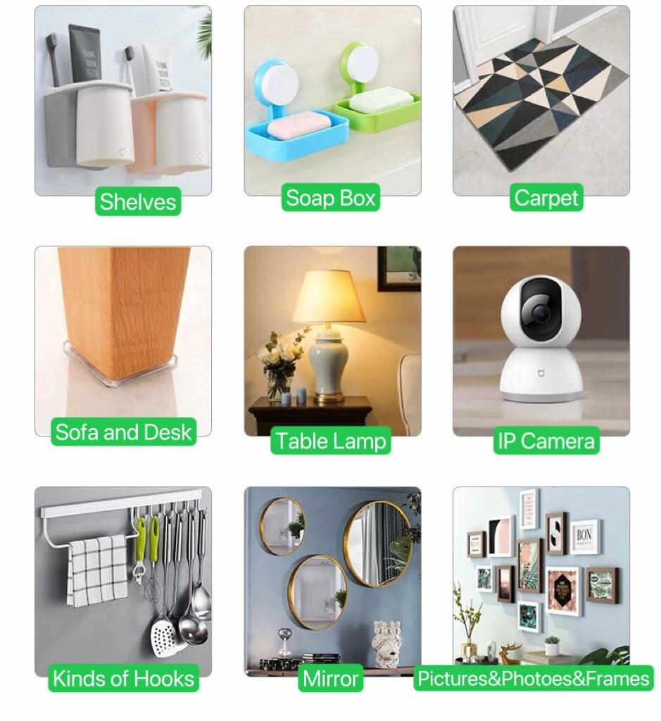 - 【Diversified Uses to Meet All Your Needs】- Strong Holding Power can perfectly mount or repair stuff without drilling hole or nails, fixing or pasting items such as picture hangers, frames, photos, festival decorations, wall paper stickers, posters, hooks, floating shelves, desk holders, carpets, power sockets, art crafts, board shelf, LED, DIY items, school & house room decor aesthetic and so on.