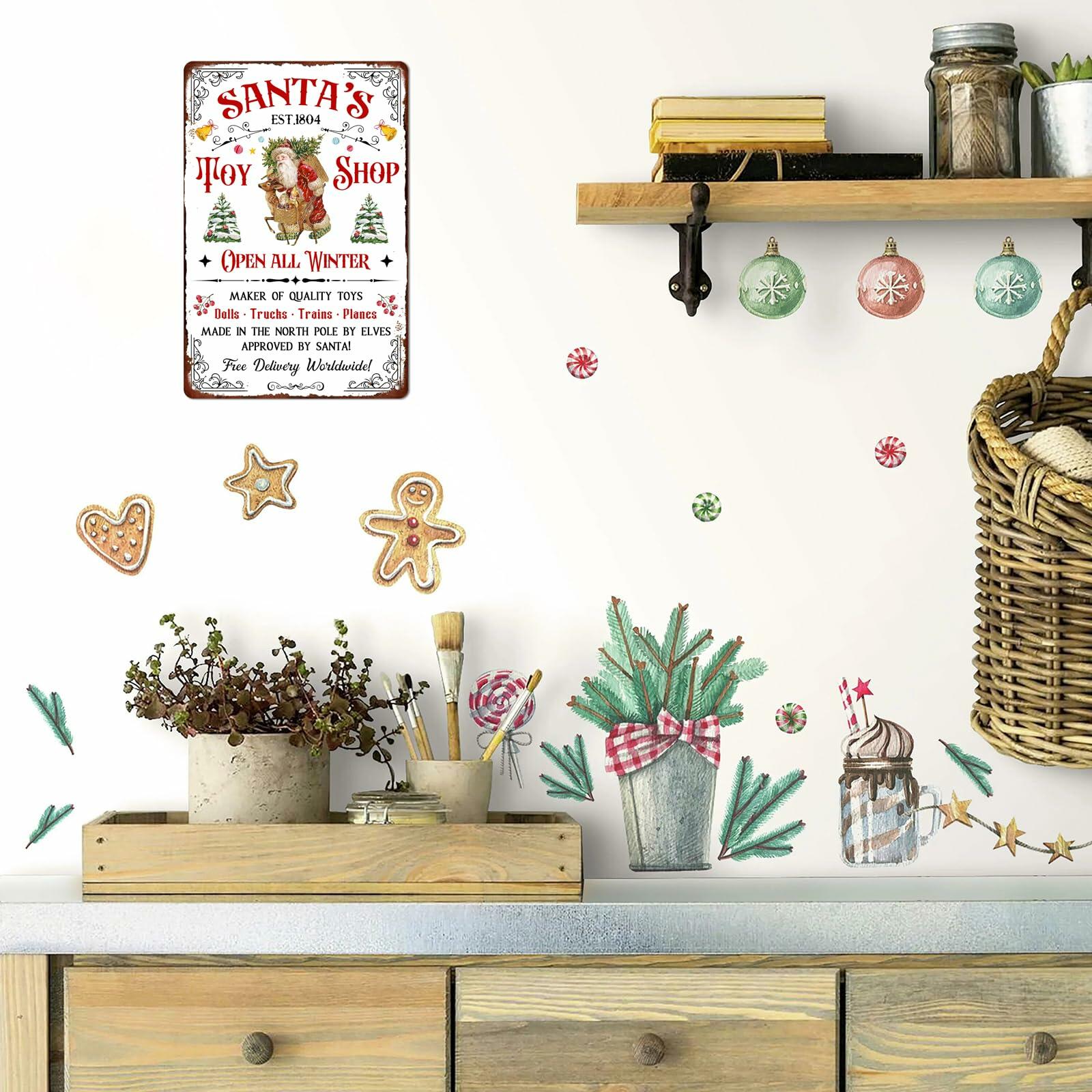 Tvdegse Santa's Toy Shop Metal Sign Retro Christmas Wall Decor 8x12 Inch