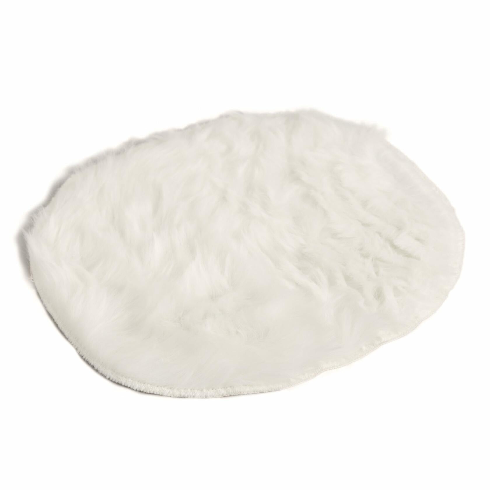 U Brands Round Fur Rug White Faux Sheepskin Soft Fluffy 3ft Diameter