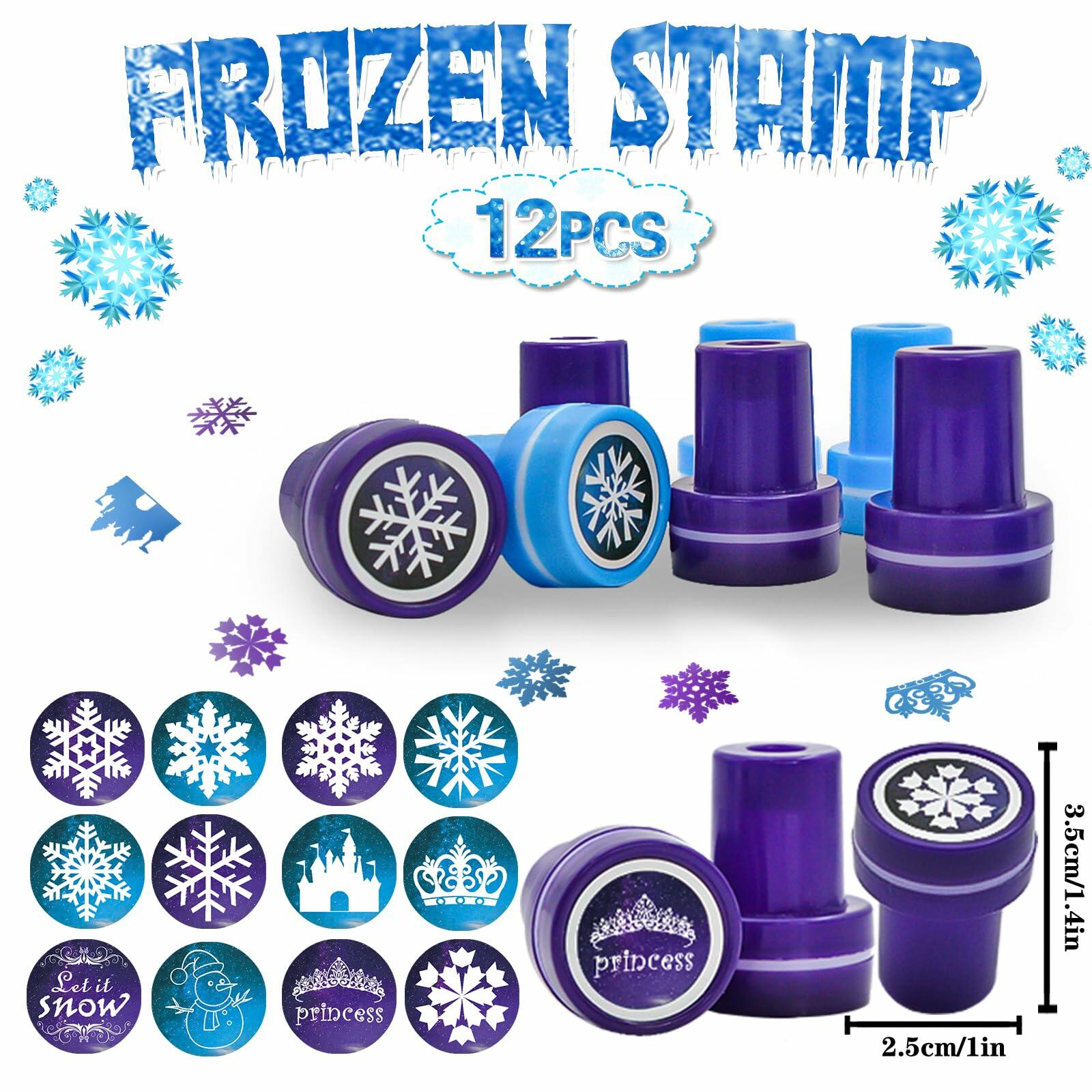 - Snowflake Party Favors: Snowflake birthday party supplies include 12 Invisible ink pen (purple and blue),12 Snowflake notebook,12 Slap Bracelets (12 styles),12 Snowflake silicone keychains(3 colors), 12 Stampers with different patterns,1 Snowflake sticker (8 styles).