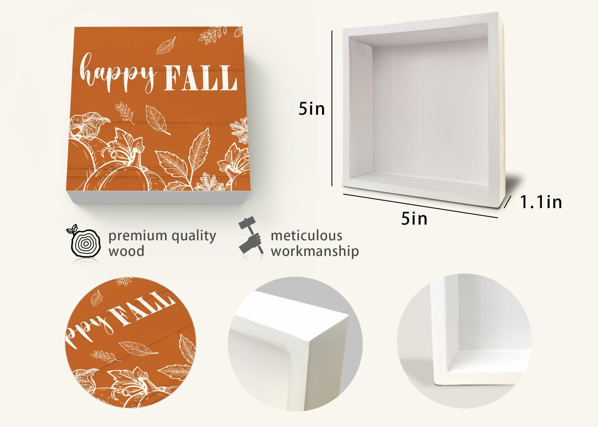 - Versatile 5x5 Inch Wood Box Sign for Wall & Table: This perfectly sized 5x5 inch Wood Box Sign is ideal dual-purpose fall decor! Display it as charming wall art decor or delightful table decor throughout your home. Its compact scale fits beautifully in any space.