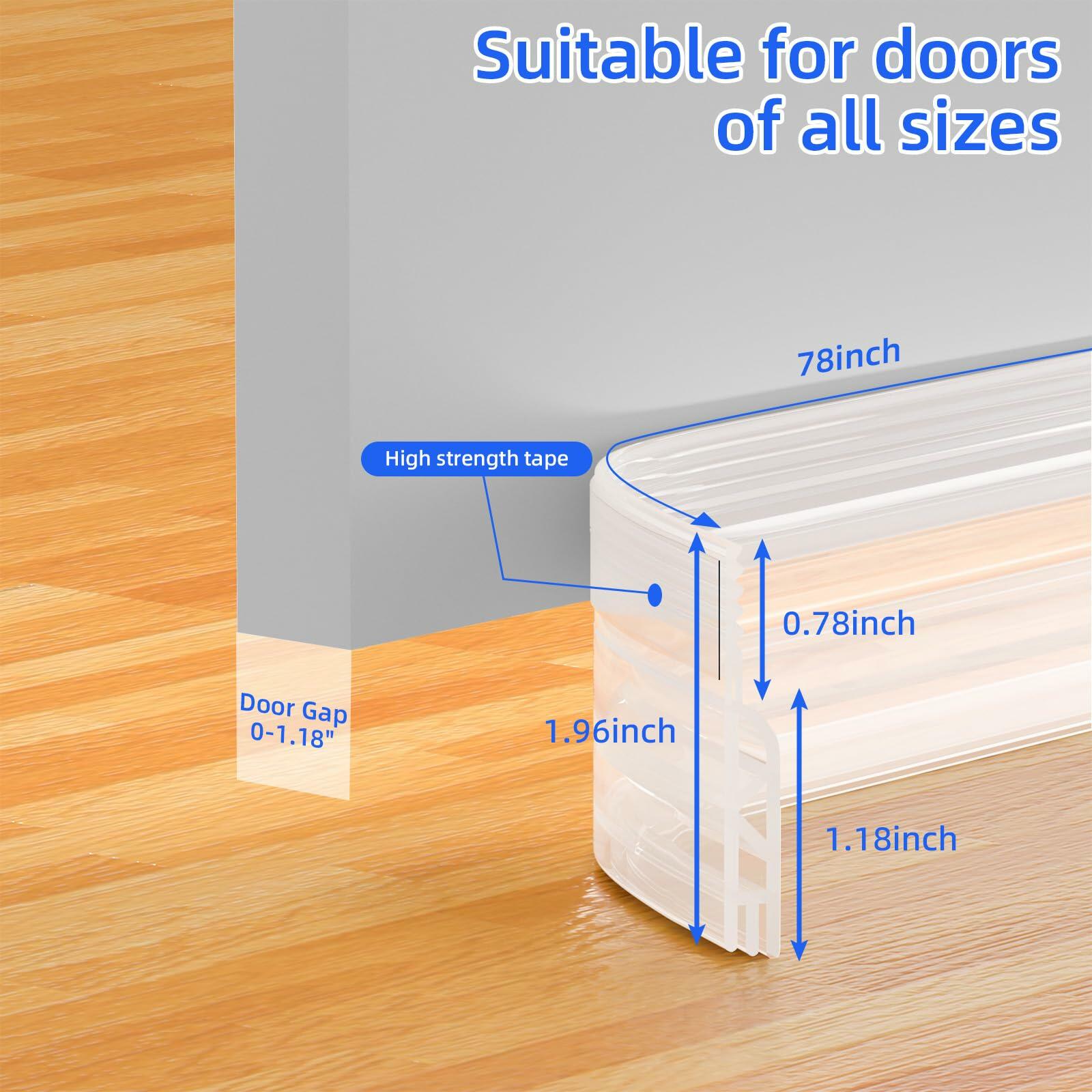 Under Door Draft Stopper Door Sweep Weather Stripping Seal Transparent 78in