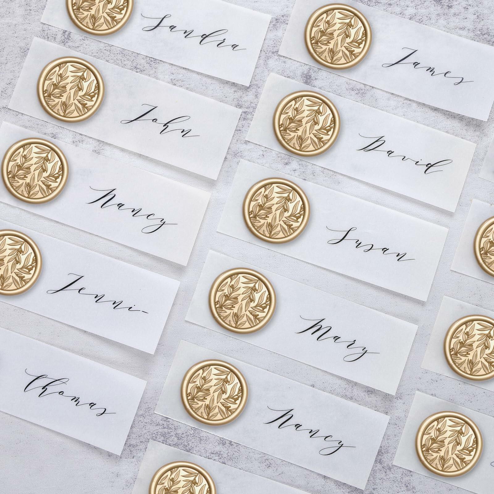 - PACKAGE INCLUDES - You will receive 50 pieces of light gold color wax seal stickers in 3D leaf designs. The wax seal sticker diameter is 1.2 inches/31mm and with almost the same size of adhesive on the back. Weighs 0.02oz per seal and may add weight to envelopes.
