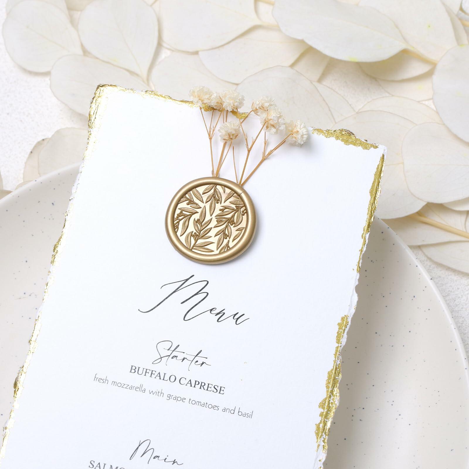 UNIQOOO 3D Leaf Wax Seal Stickers Prosecco Metallic Light Gold 50 Pcs