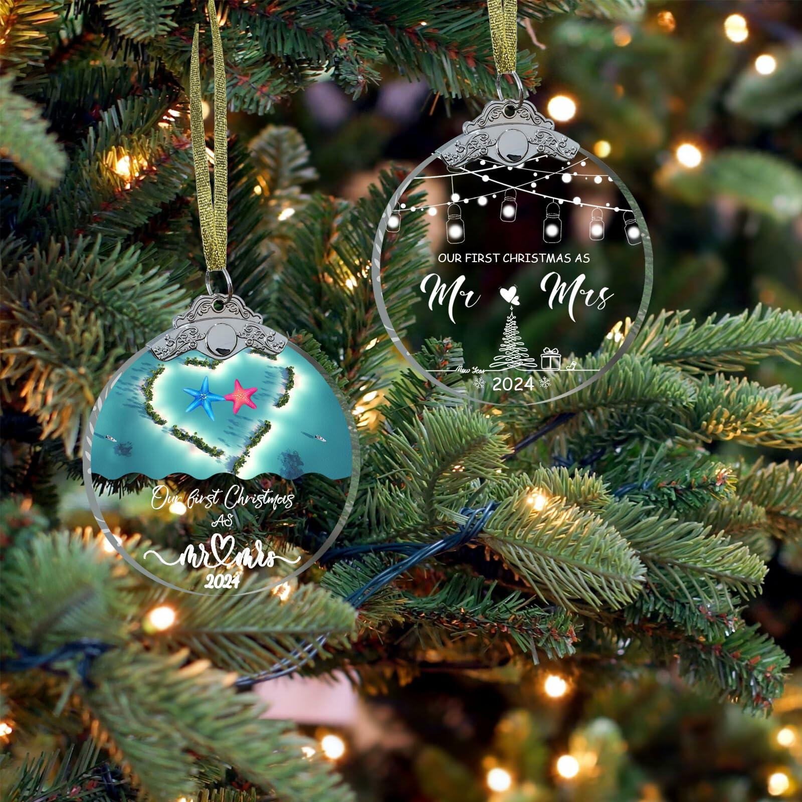 Unique 2024 Crystal Glass Wedding Ornament Mr and Mrs Gift for Couples