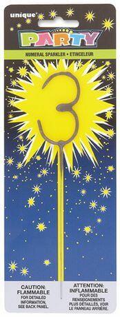 Unique Industries Number 3 Sparkler Flame Cake Candle 7" Gold Wax