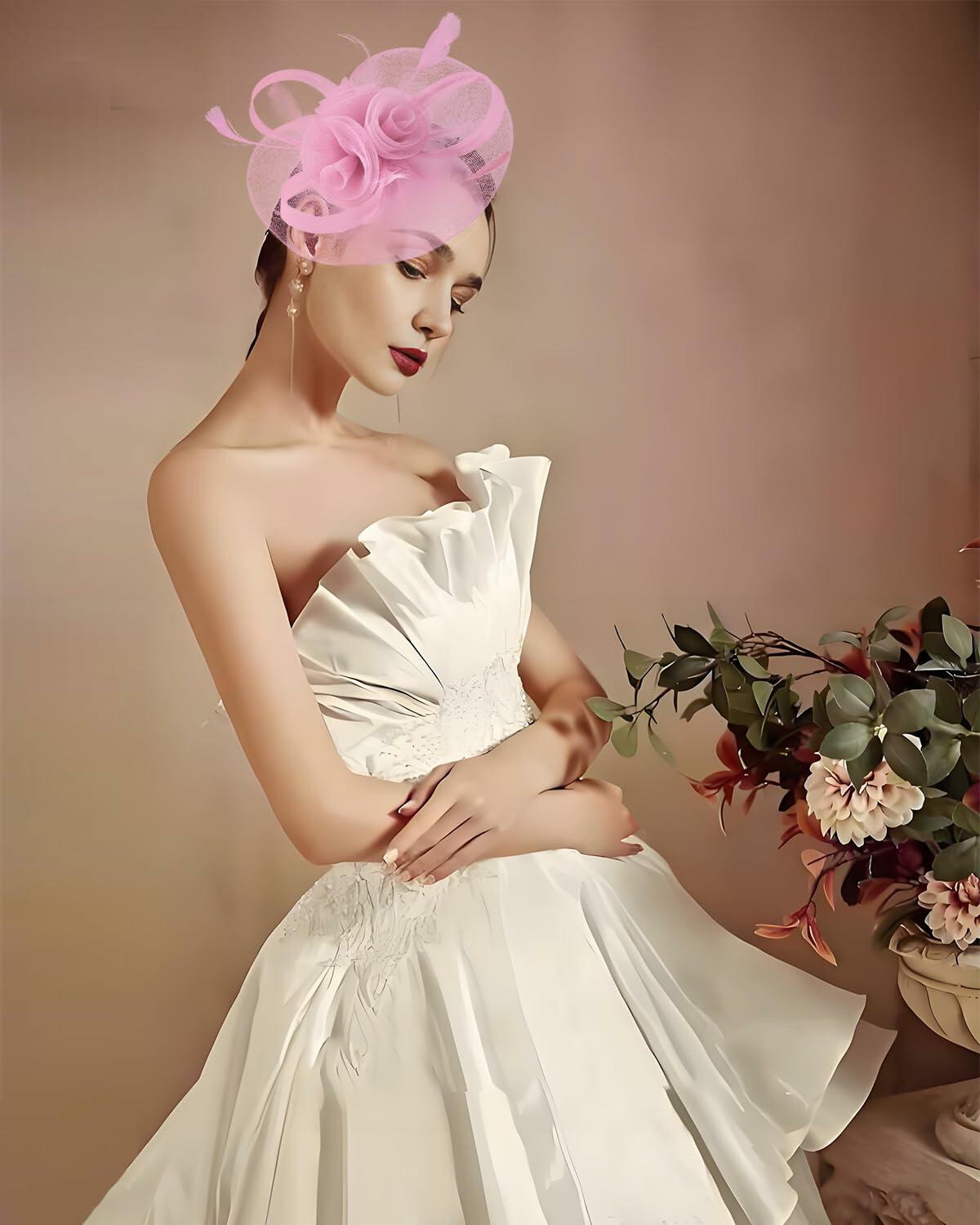 Unpifolov Fascinators Flower Mesh Feathers Headband White Floral Womens