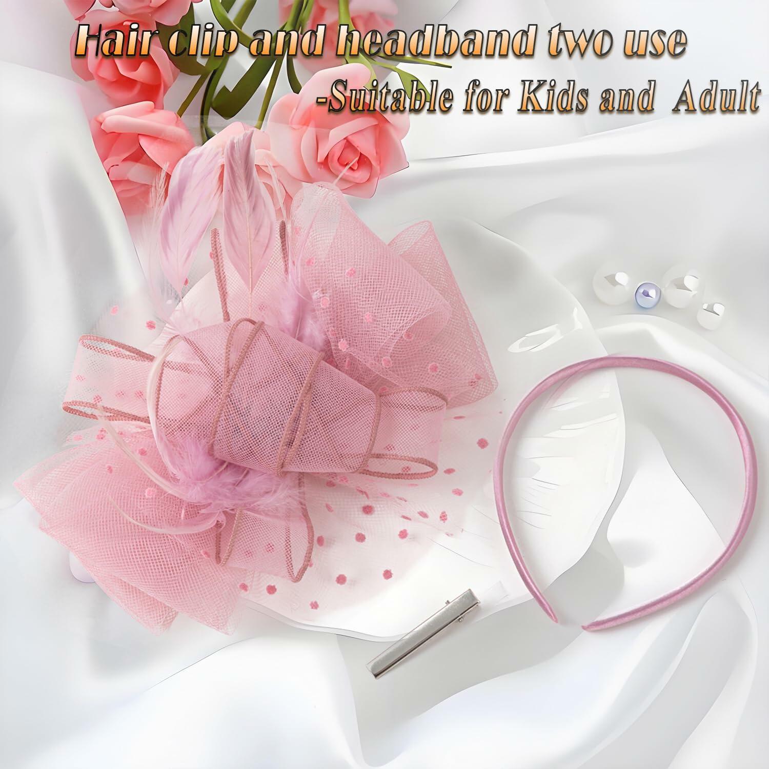 Unpifolov Fascinators Flower Mesh Feathers Headwear Light Purple