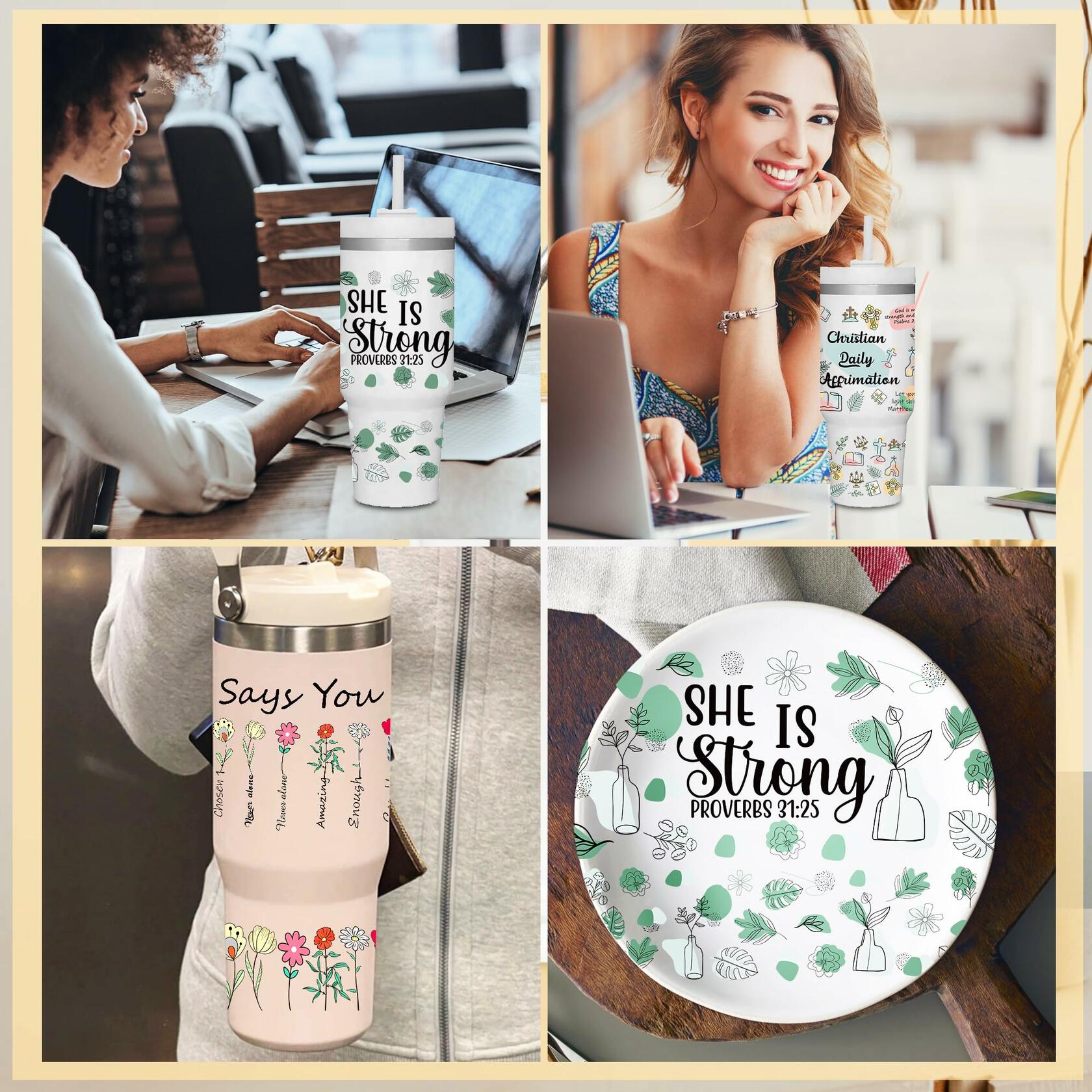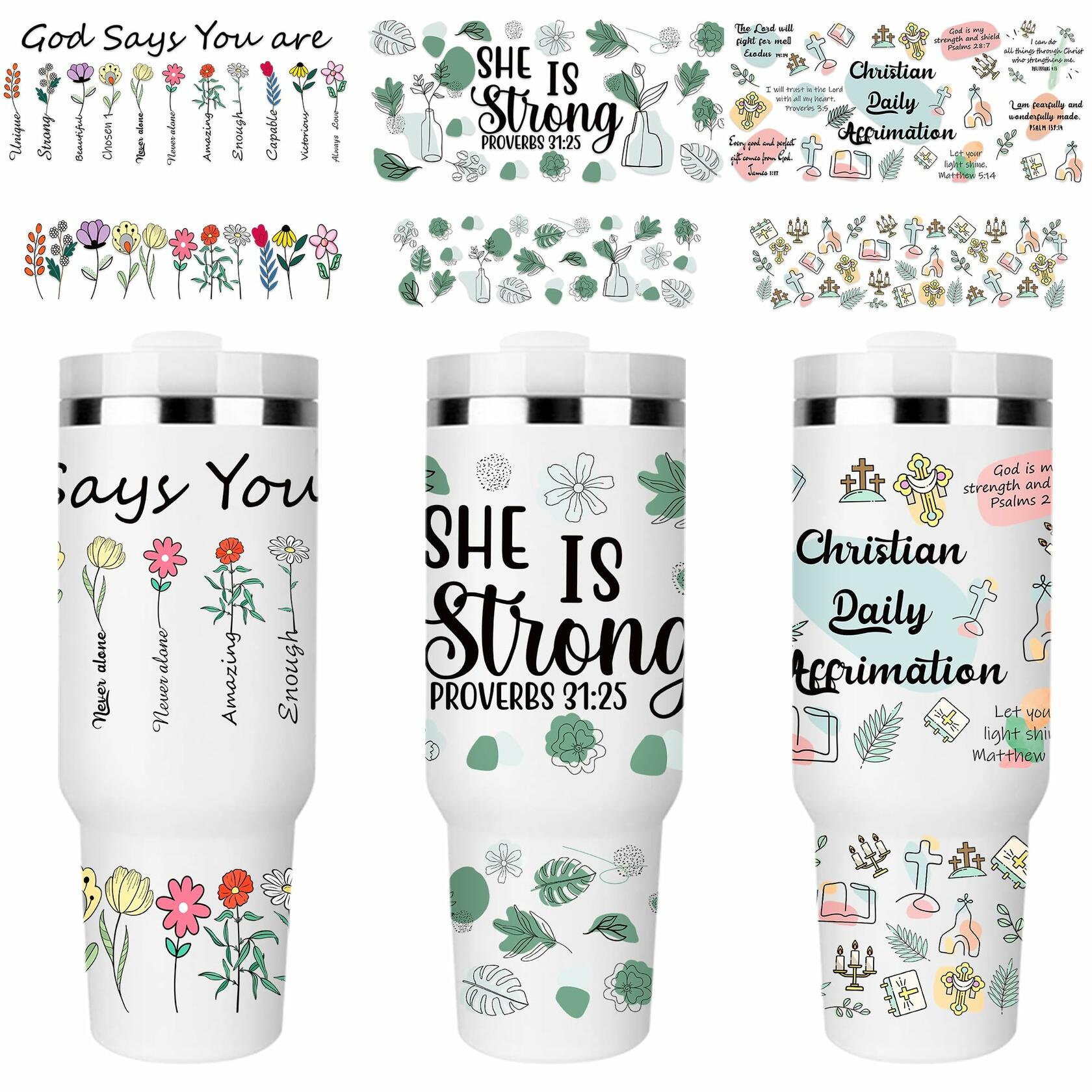 UV DTF Cup Wrap Transfer 6 Sheets Bible Verse Floral Waterproof 40oz Tumbler