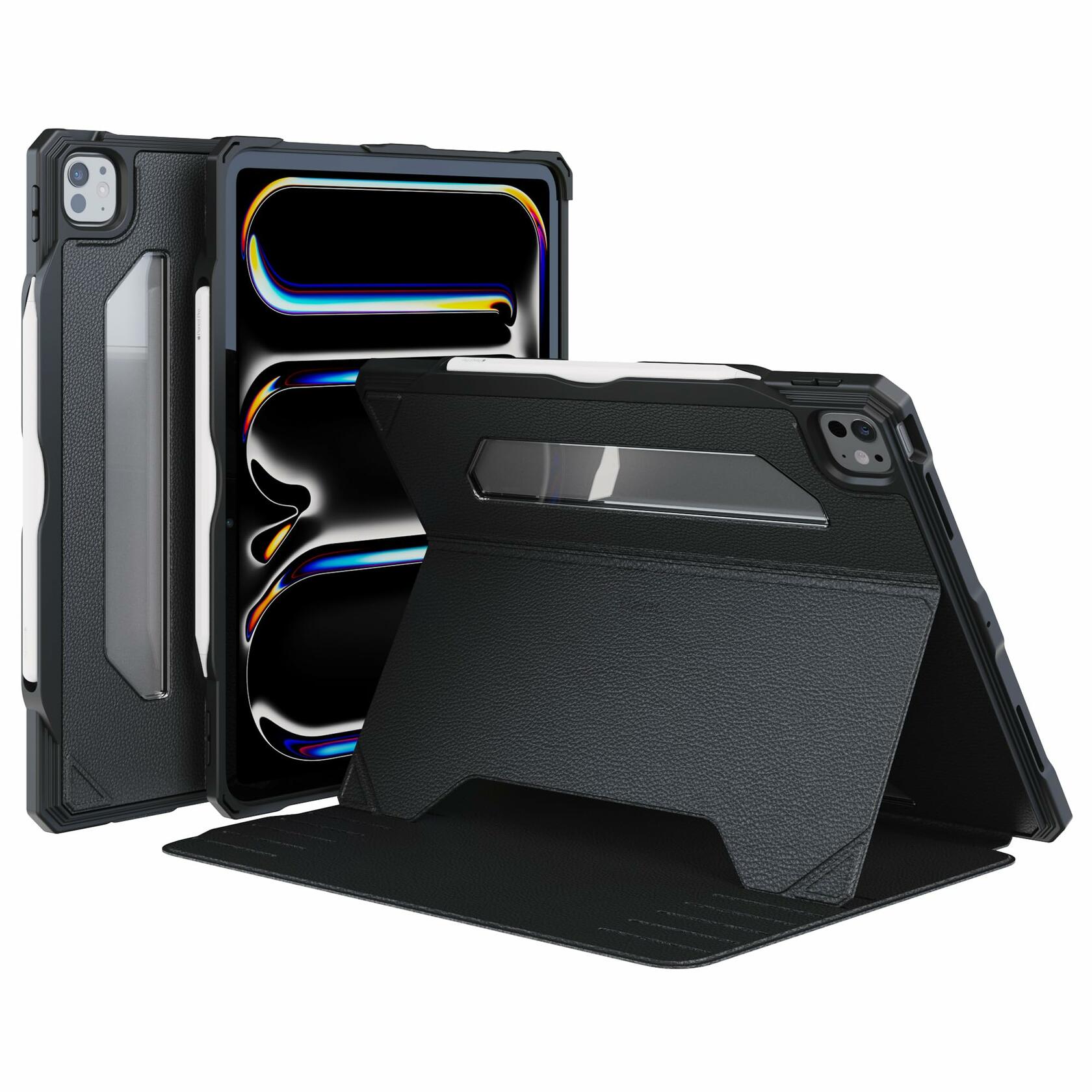 UZBL iPad Pro 13-inch 2024 Vegan Leather Case Magnetic Stand Black