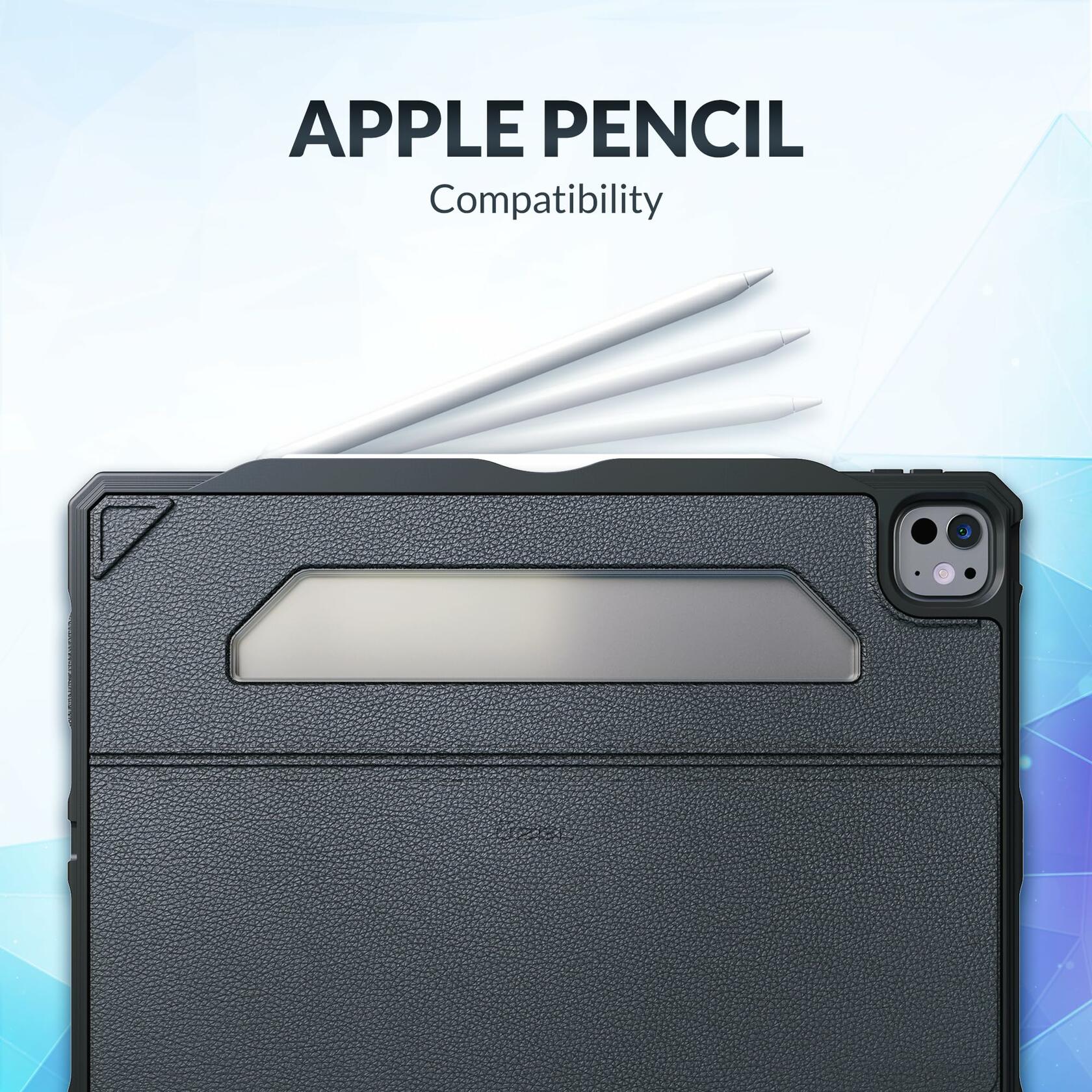 - Apple Pencil Compatible: Apple Pencil compatibility in mind, ensuring seamless integration and easy access. Whether you’re sketching, taking notes, or editing, your Apple Pencil stays securely stored and ready for use