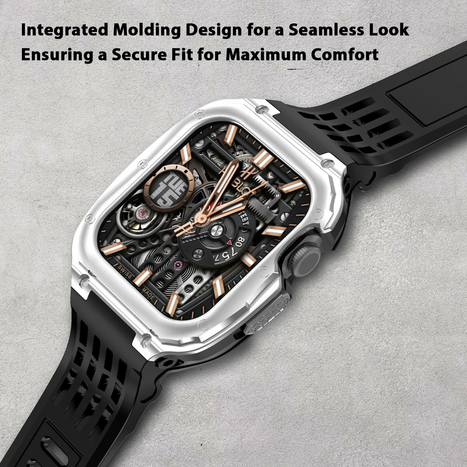 - 【All-around Protection】 The outer shell of this 44/45mm rugged band is made of high-quality 316L solid stainless steel, ensuring durability and resistance to wear. The inner layer of the case features a soft and sturdy TPU bumper that provides shock resistance and protection against falls. By wearing our sturdy Apple Watch strap, your iWatch will be fully protected from scratches and impacts.