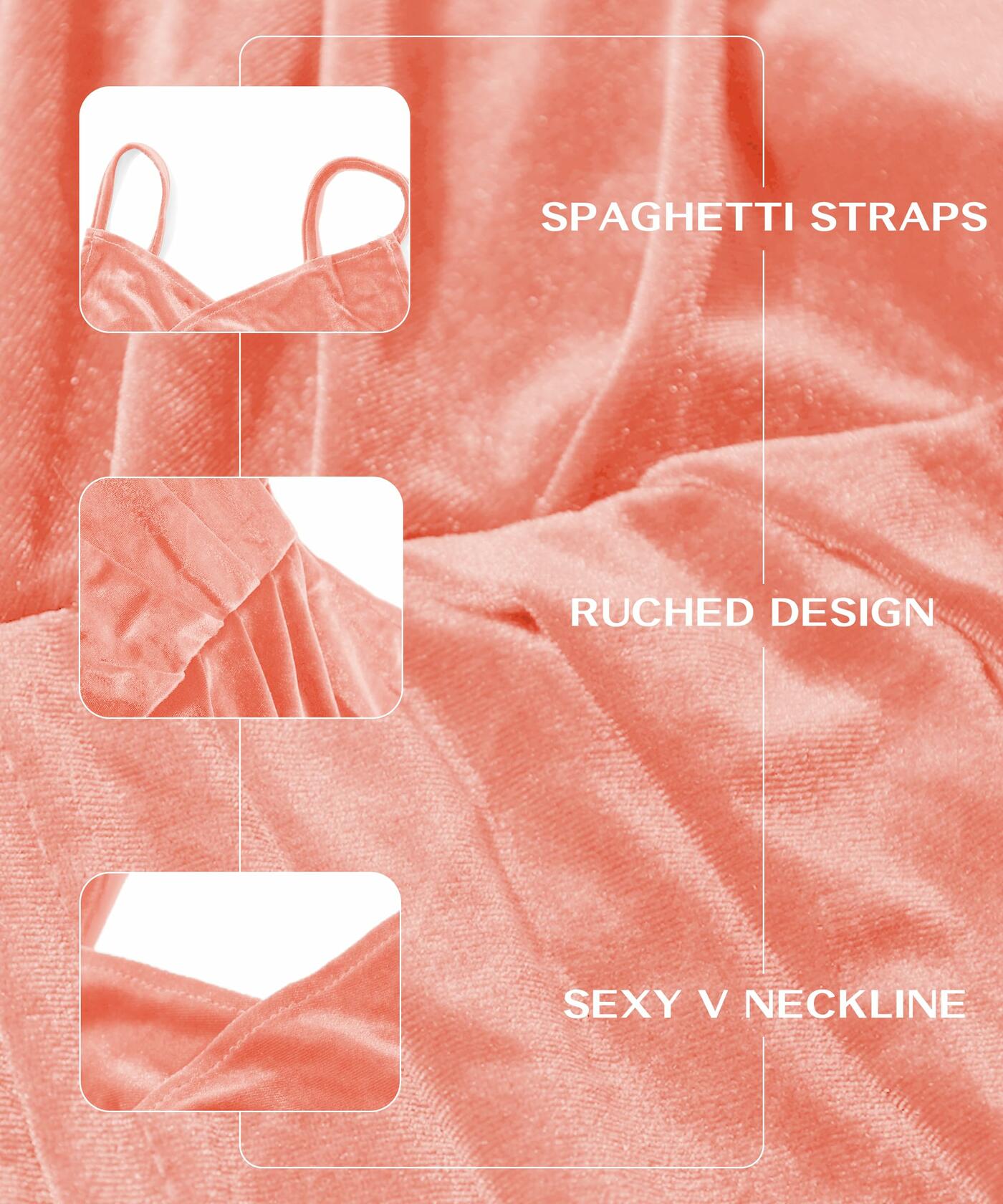 - Comfortable Velvet Material —— V neck spaghetti strap velvet dress for women made of 95% polyester, 5% spandex, breathable and lightweight, has nice elasticity and is durable. Give you soft and skin-friendly wear feeling