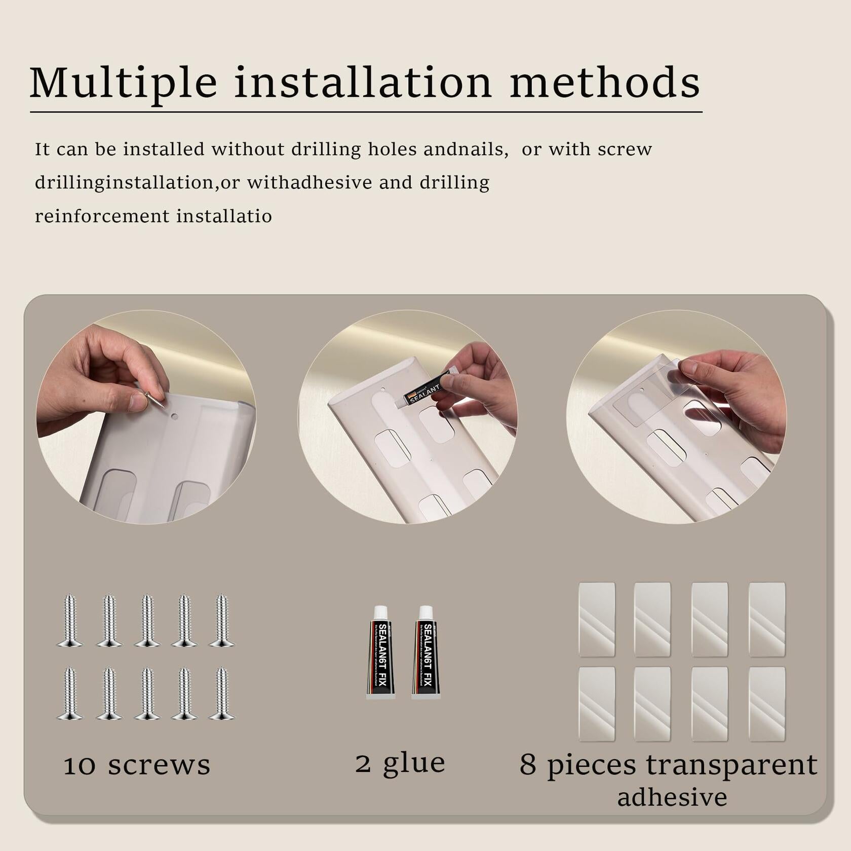 NOTE: Please choose the most suitable installation method according to your usage scenario. Please measure the specific size of the location where you want to install it before purchasing.