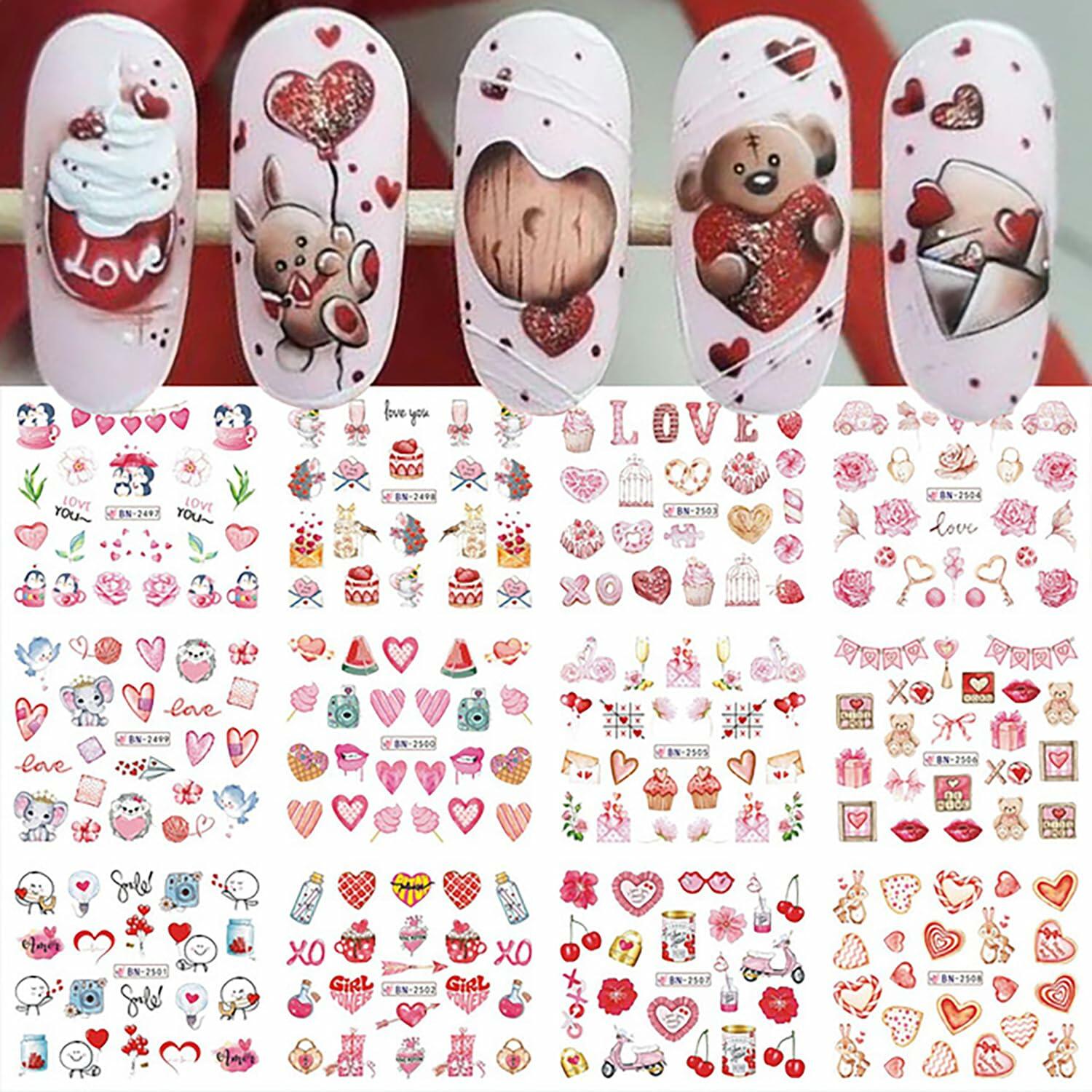 - 【Valentine Nail Stickers】:You will get 12 sheets colorful and beautiful Christmas nail art stickers in one set, cut the pattern to fit most natural or fake nails, there are many patterns for you to choose from