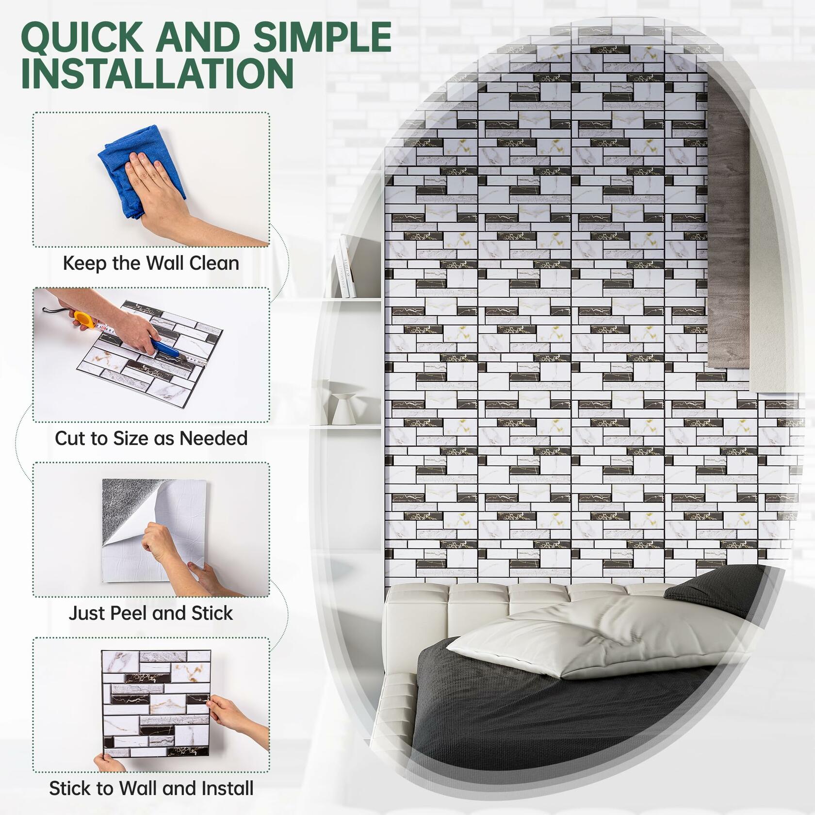 - QUICK INSTALLATION: Please clean the wall before sticking, make sure the wall is dry, flat and free of dust otherwise it will affect the sticking effect. It can be pasted on any smooth or flat surface, such as concrete wall, lime wall, glass, steel plate, wooden board, painted wall, etc.