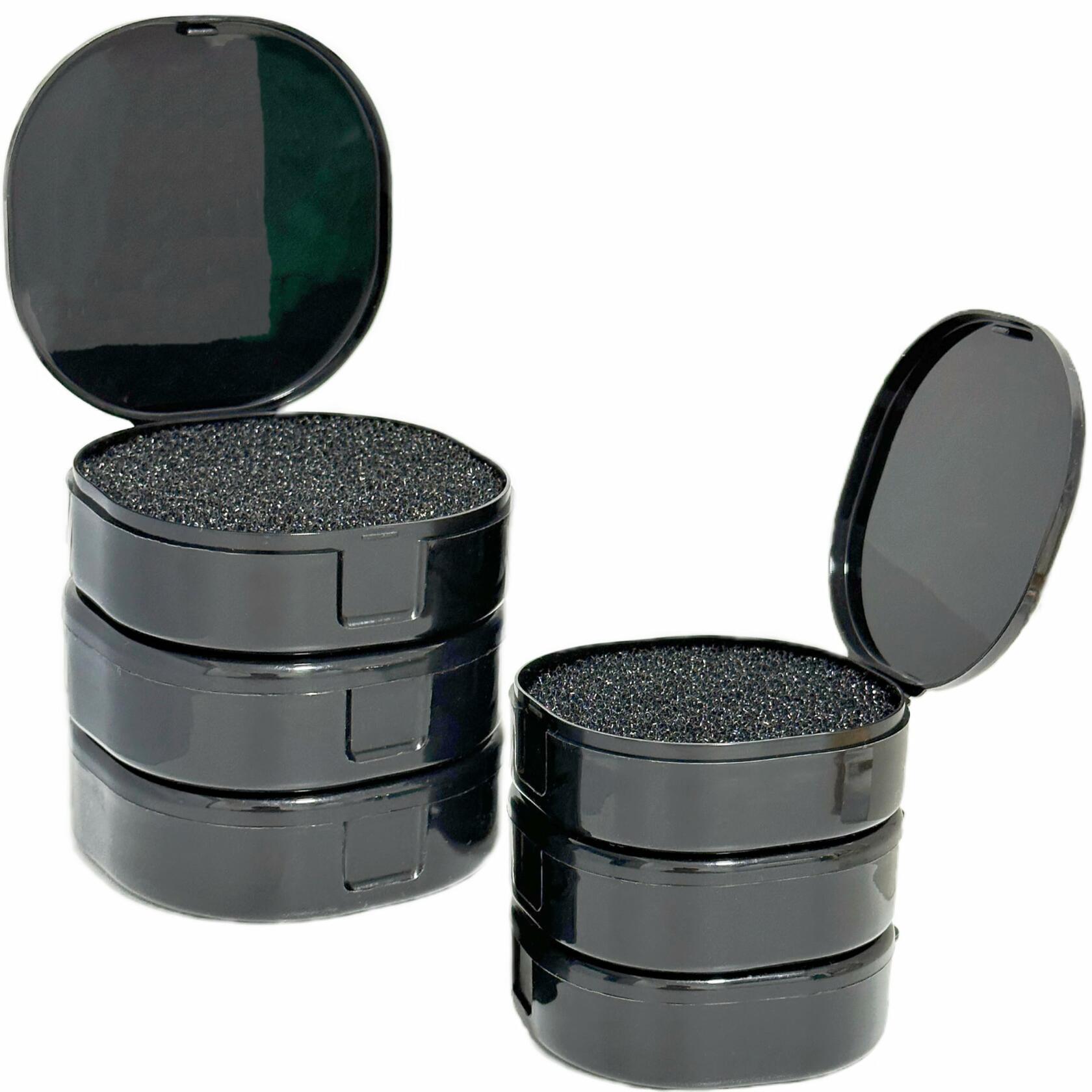 - Solid Makeup Brush Cleaner: Pack of 6 upgraded black makeup brush sponge cleanser with 6 plastic boxes. Removal color without water and drying time!