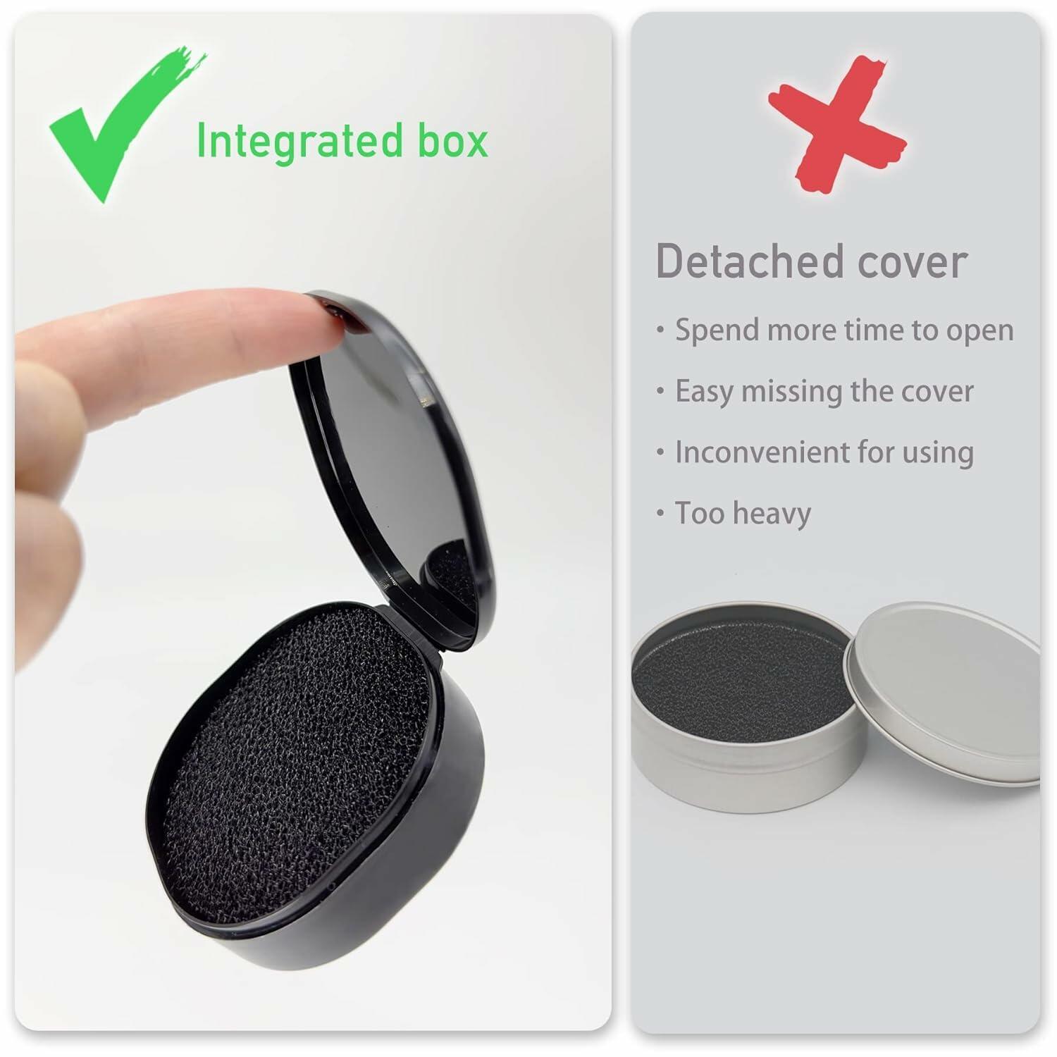 2024 upgraded dry makeup brush sponge cleaner with ultra soft sponge. This dry sponge for color removal is suitable for most brushes. Both sides of the makeup clean sponge can be used. It is washable. Newest portable box design is very easy to open and close. Also is a great deesign that never worry about missing the cover.