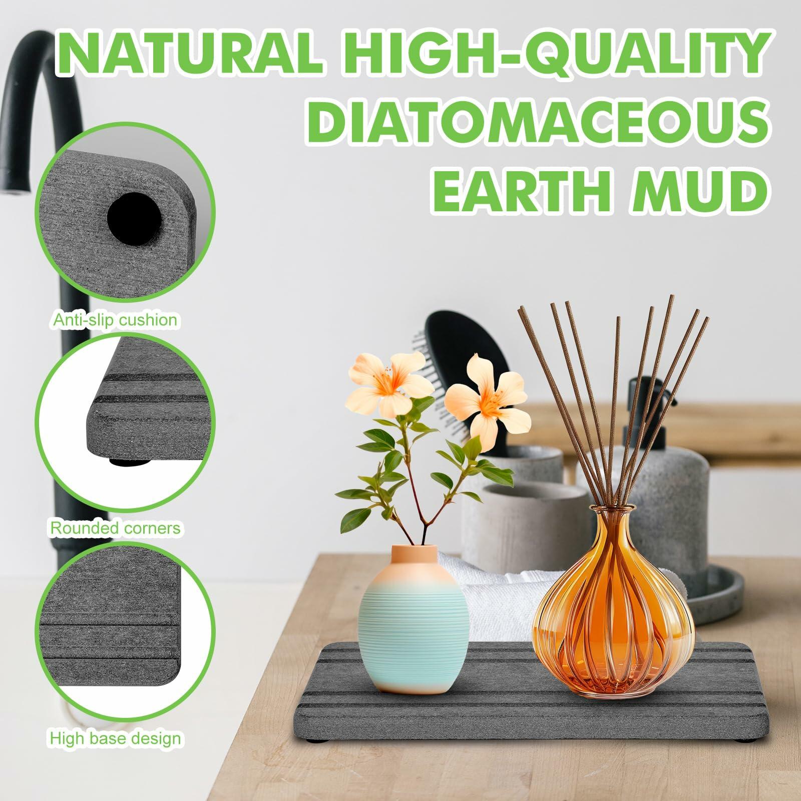 - ✅【Water Absorption and Fast Drying】Our stone drying tray is made from natural diatom mud and plant fibers, the small pores in diatomaceous earth give it amazing water absorption. They can absorb water and dry out in a few minutes. This diatomite stone sink tray makes the bathroom countertop more dry and tidy.