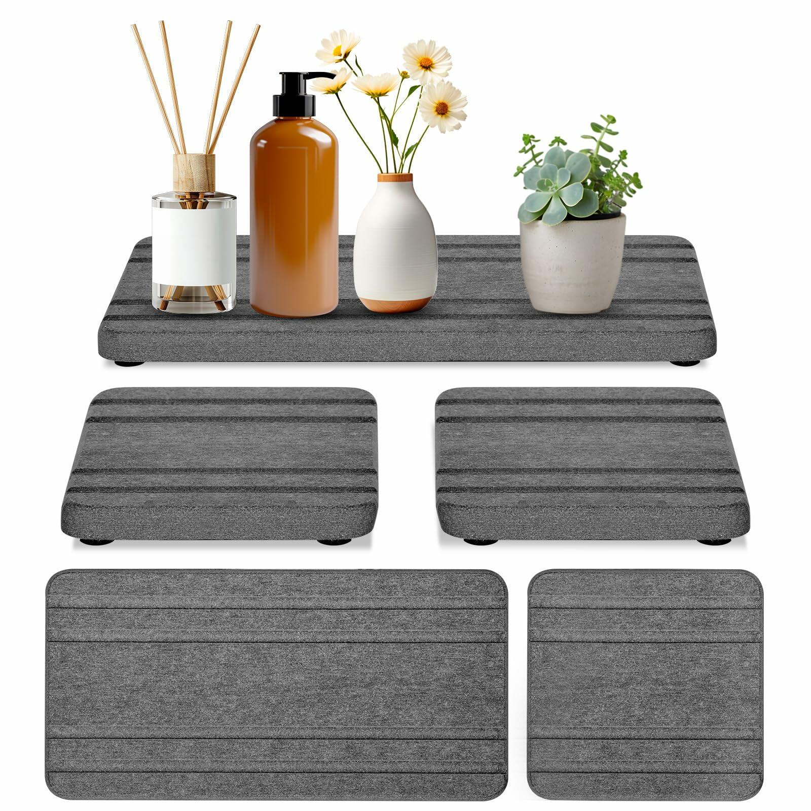 Vegoran 3PCS Grey Diatomite Stone Sink Tray 4x8in Water Absorbing Fast Dry