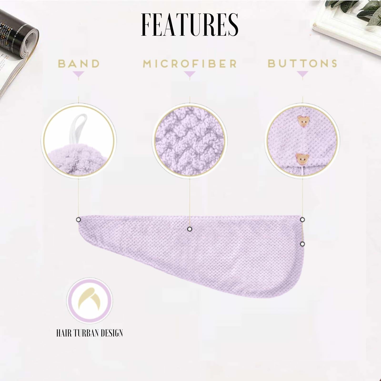 - Super Absorent Microfiber for Quick Drying: Our hair towel wrap features ultra-absorbent microfiber that rapidly soaks up water, drying your hair efficiently and reducing the need for a hairdryer. Useful for busy individuals and families, it ensures a faster, healthier drying experience