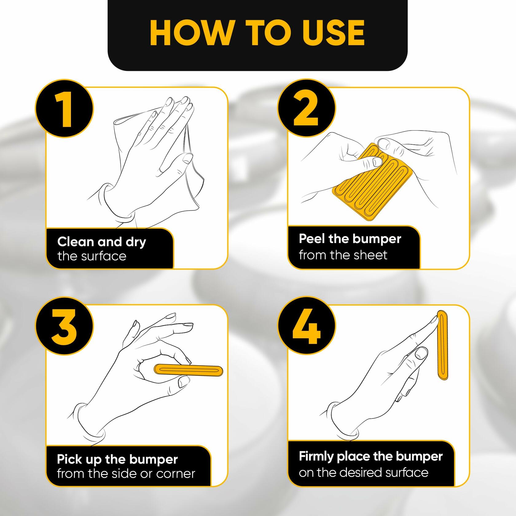 Vellax Clear Silicone Wall Protector Strips 3.5x0.7x0.2in 8 Count
