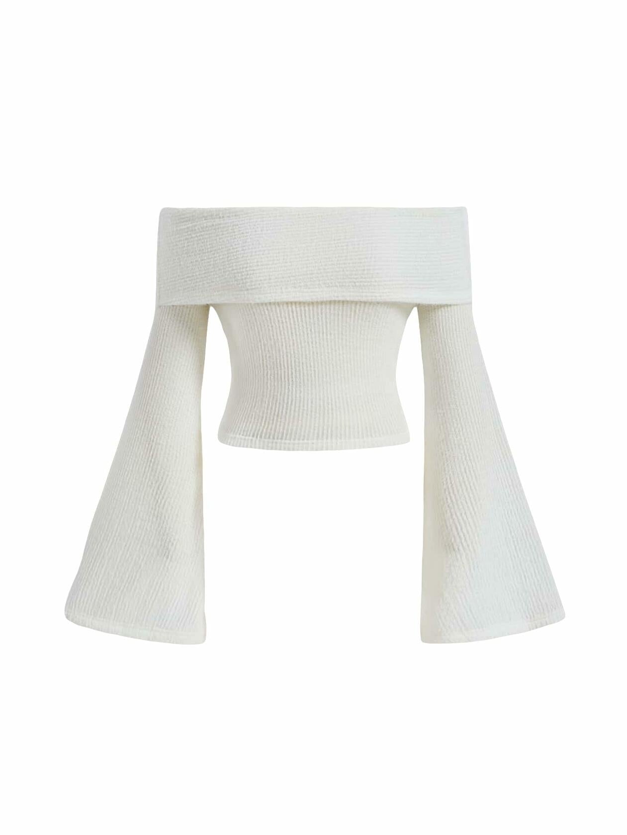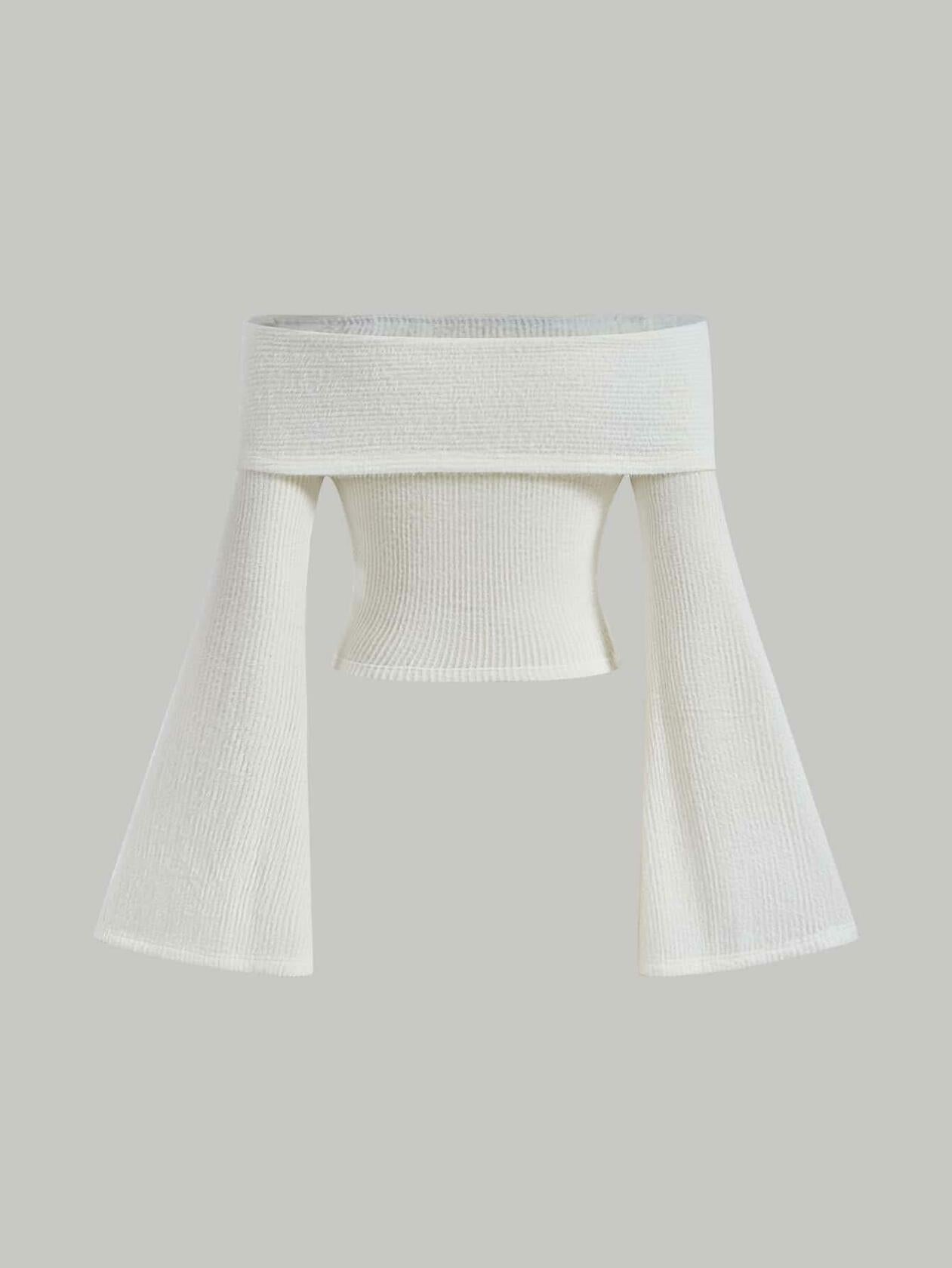 Verdusa Women's Off Shoulder Sweater White M Slim Fit Crop Tee Top