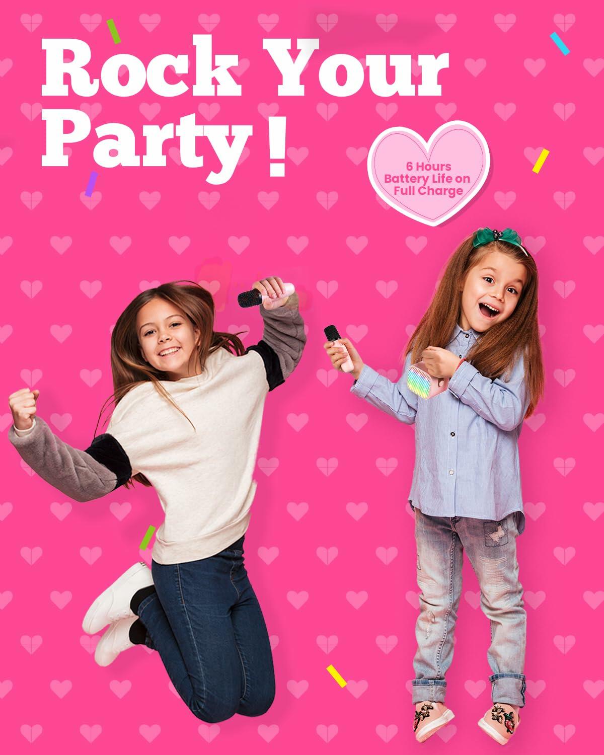 VERKB Kids Karaoke Machine Bluetooth Speaker 2 Wireless Mics Pink