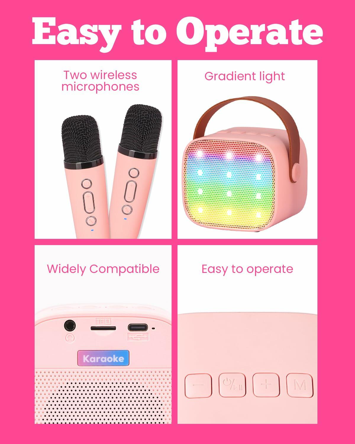 - 【Perfect Gift for Kids】Beautiful color design and exquisite gift box make the karaoke machine for kids adults the best gift. It is a great party or birthday gift for girls boys teens aged 3-10 years. Perfect gift choice for all kinds of festival (Christmas, Valentine, Halloween, Thanksgiving, New Year).