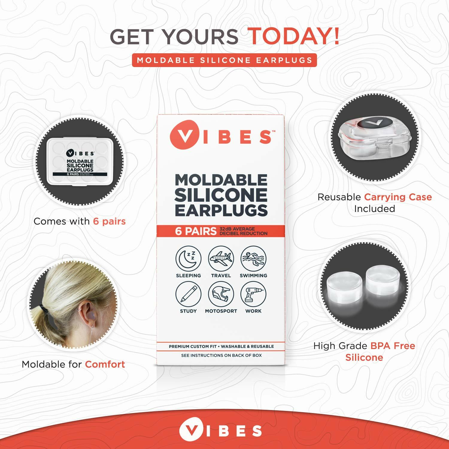 The number one choice for ear plugs! Each Package of Vibes Includes 12 Silicone Gels in the box that can be easily molded for multiple sizes!