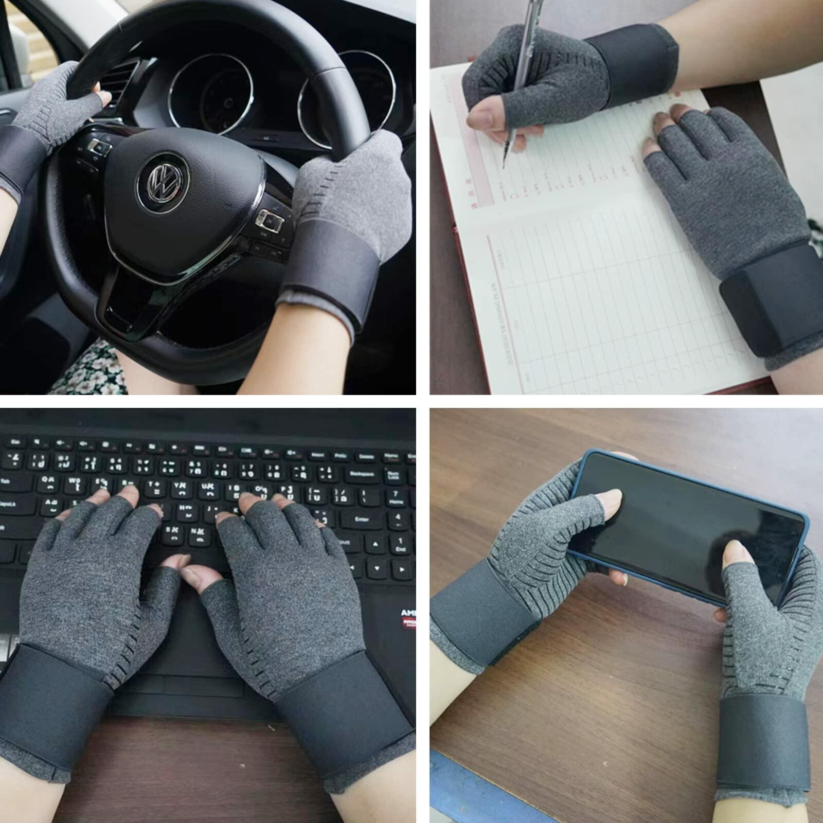 - 【All-Day Pain Relief】Ergonomic copper fit gloves with 4 sizes adapt to hand changes. Fingerless design maintains phone/texting ability. Non-slip palm pads provide relief even while driving.