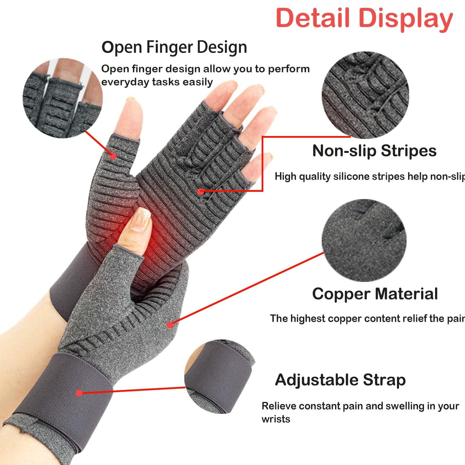 - 【All-Day Pain Relief】Ergonomic copper fit gloves with 4 sizes adapt to hand changes. Fingerless design maintains phone/texting ability. Non-slip palm pads provide relief even while driving.