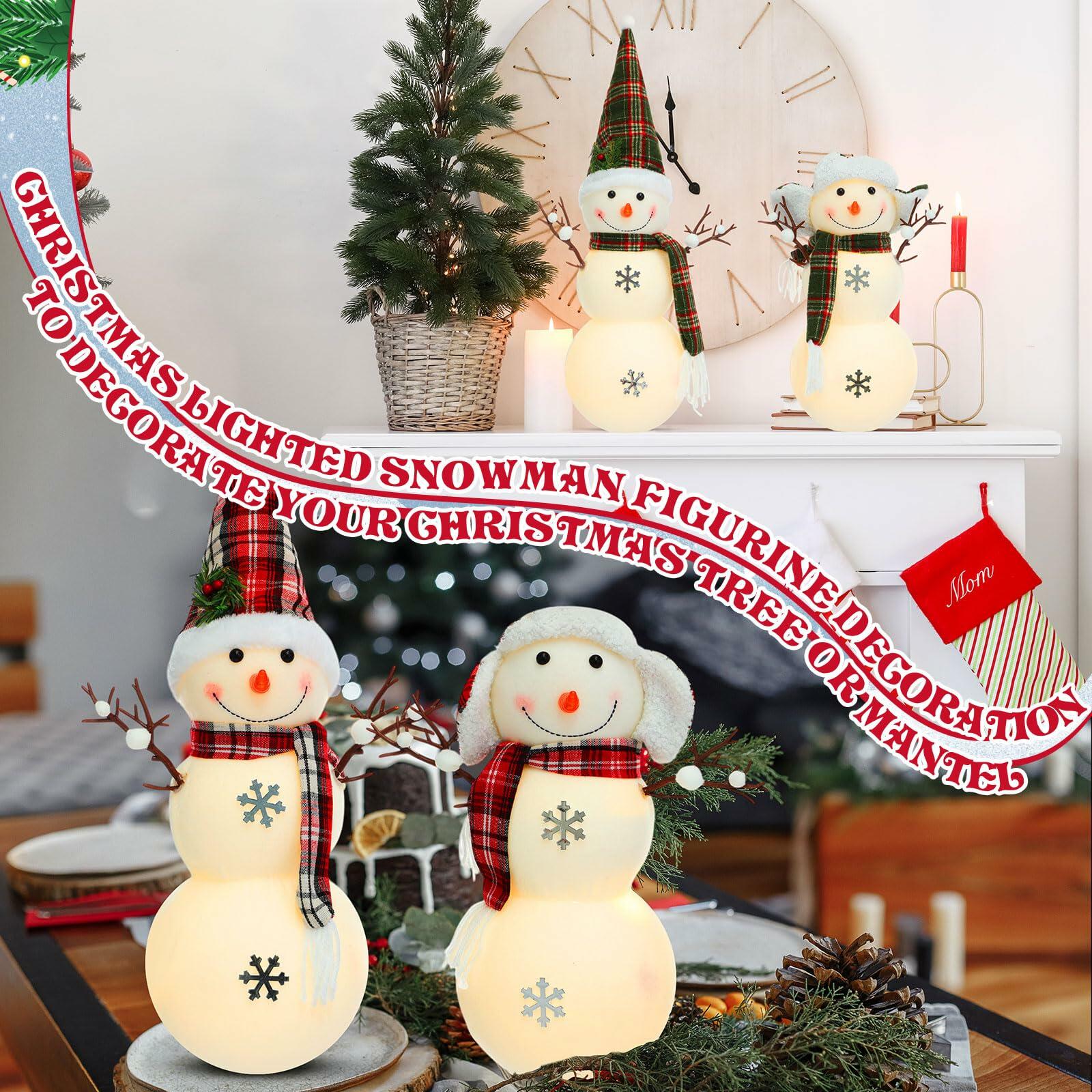 VIHOSE 2 Pcs LED Snowman Decorations 15.7" Tabletop Xmas Decor Green