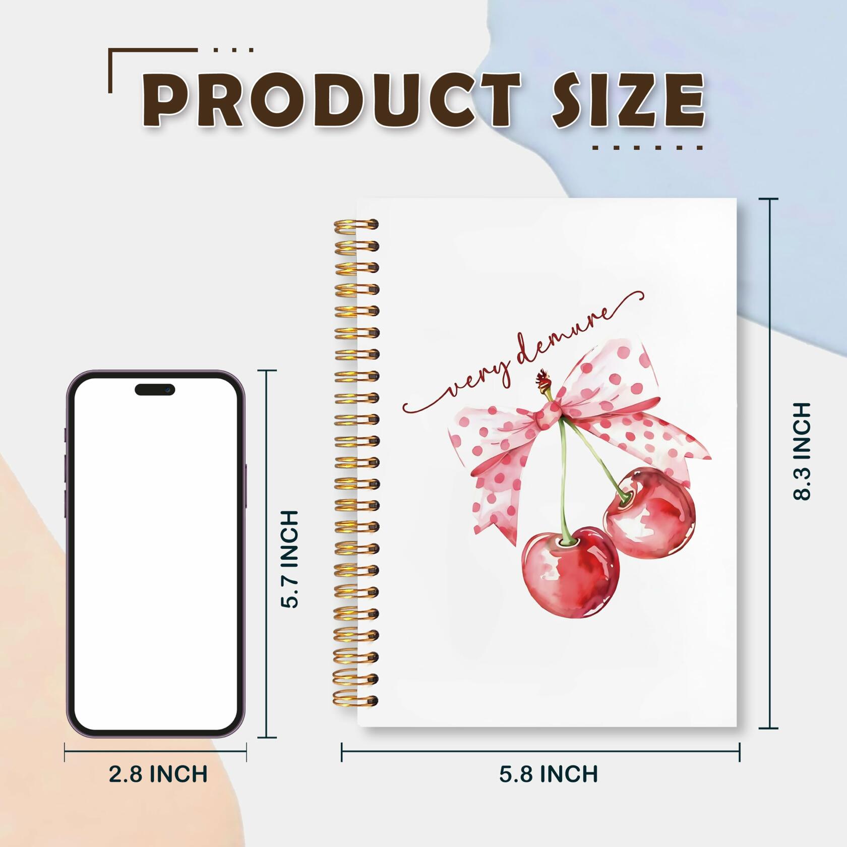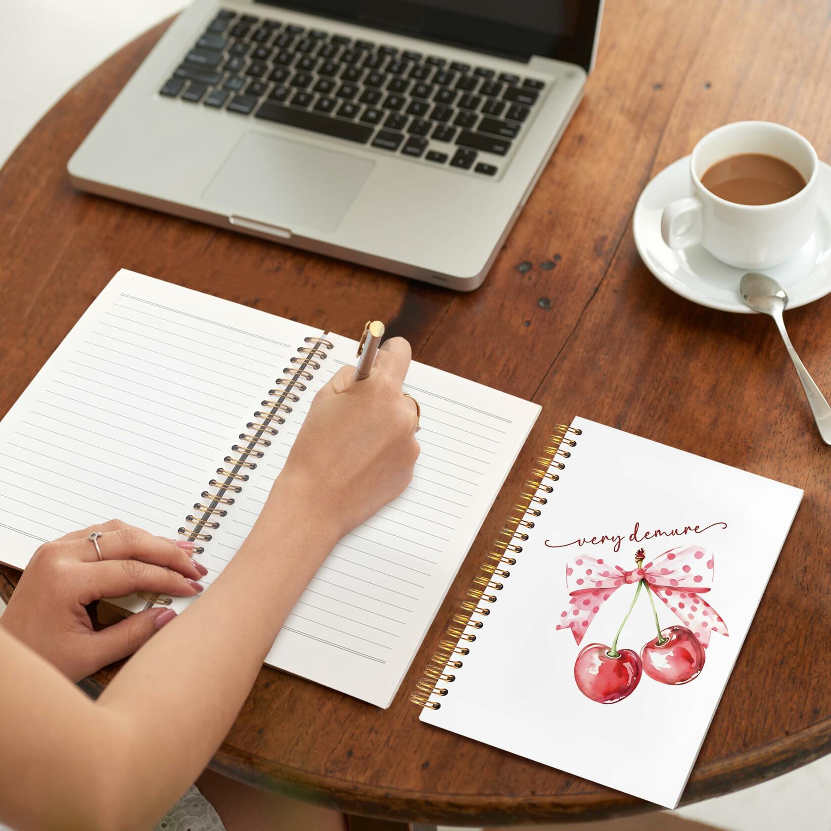 VIIJJUE Coquette Pink Bow Cherry Hardcover Spiral Notebook 5.5x8.3 Inch