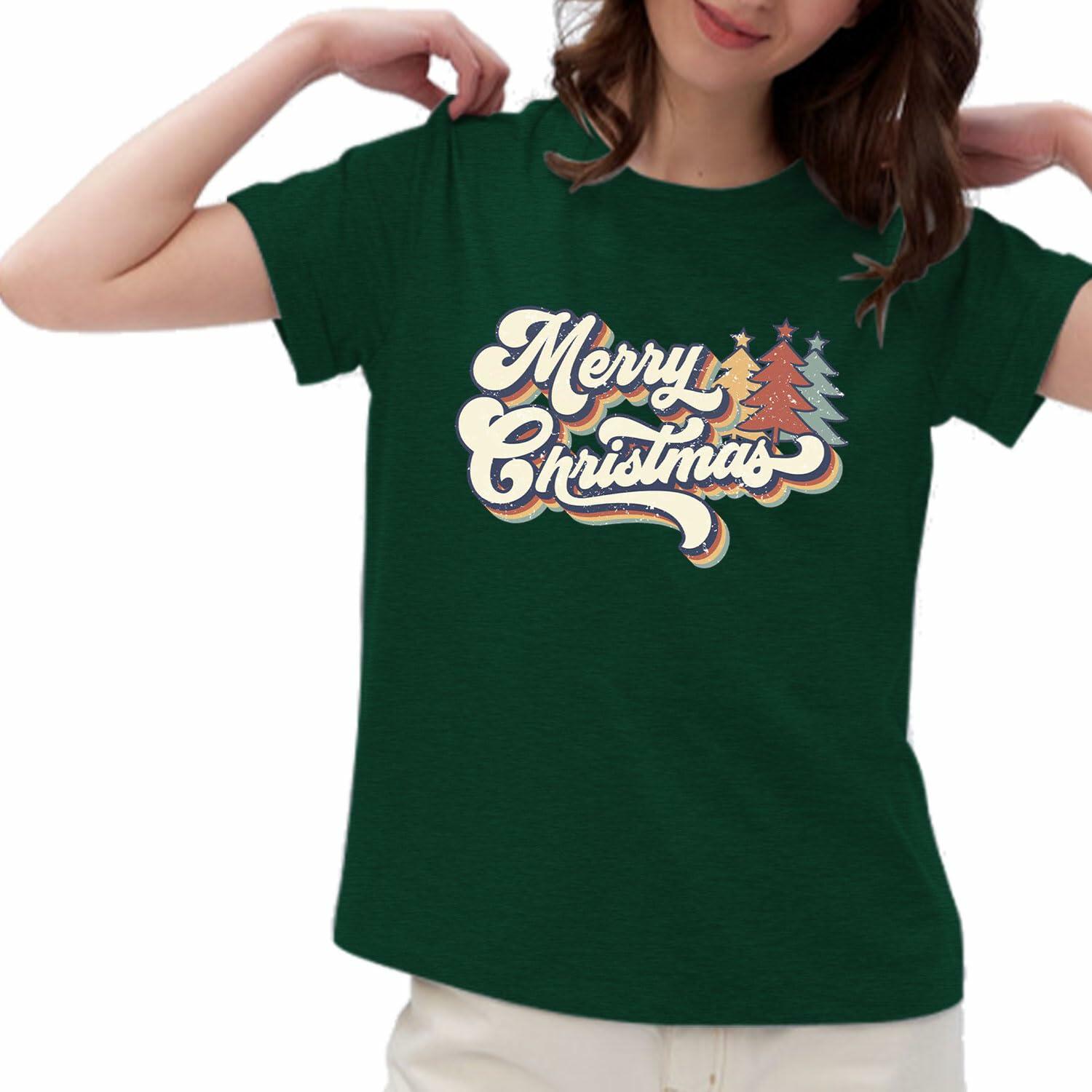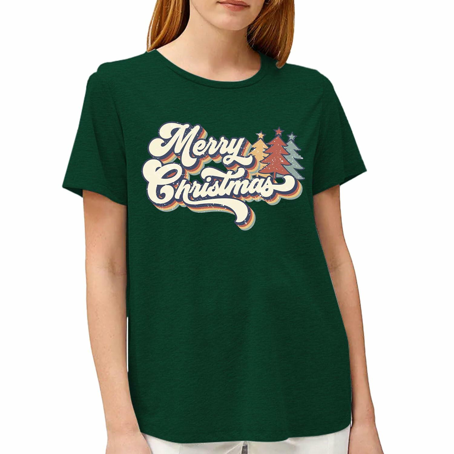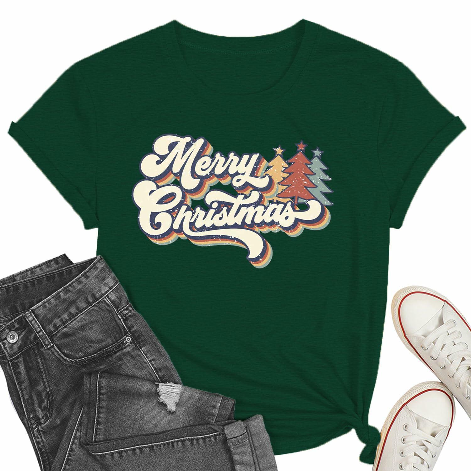 Vintage Merry Christmas Shirt Women Holiday Xmas Tee Tops Green Size S
