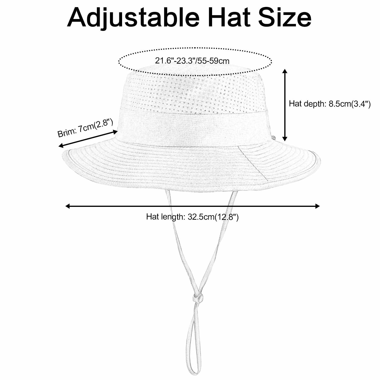 - One adjustable size: fit for head size 6 7/8-7 3/8, 55-59cm, 21.6-23.3inches; Brim length is approximately 2.75 inches