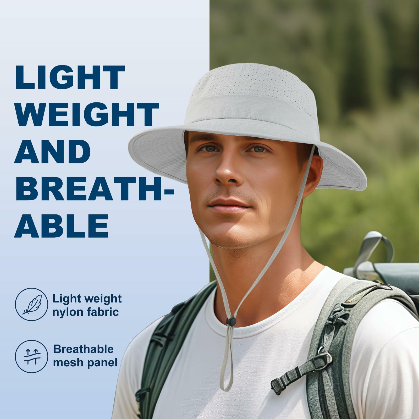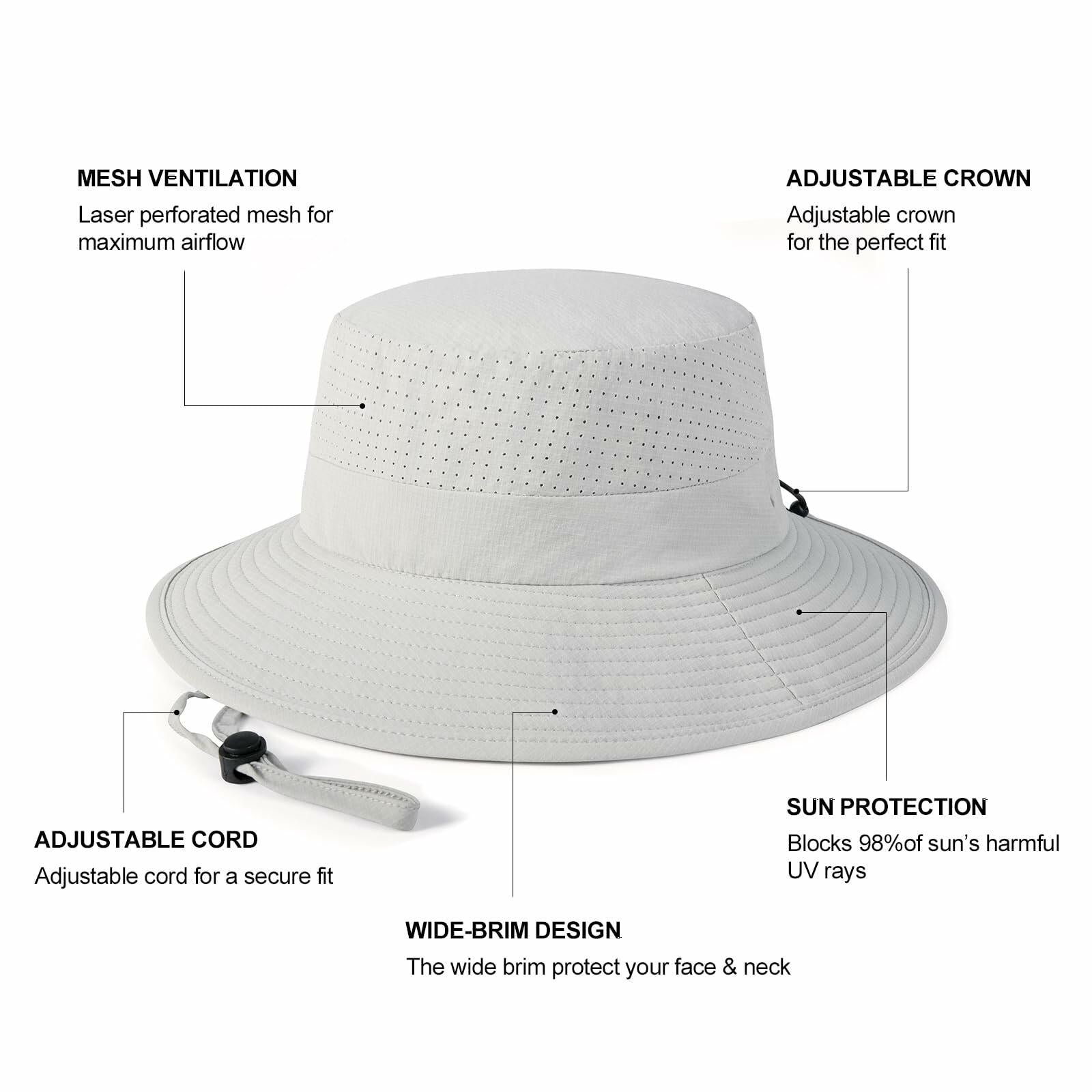 VOBOOM Breathable Wide Brim Sun Hat UV Protection Fishing Cap Grey
