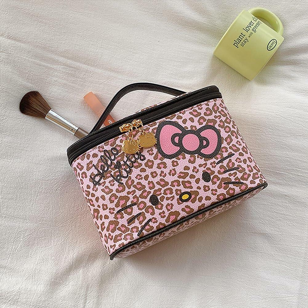 Vokover Kawaii Pink Makeup Bag, Large Capacity PU Cosmetic Bag with Double Cute