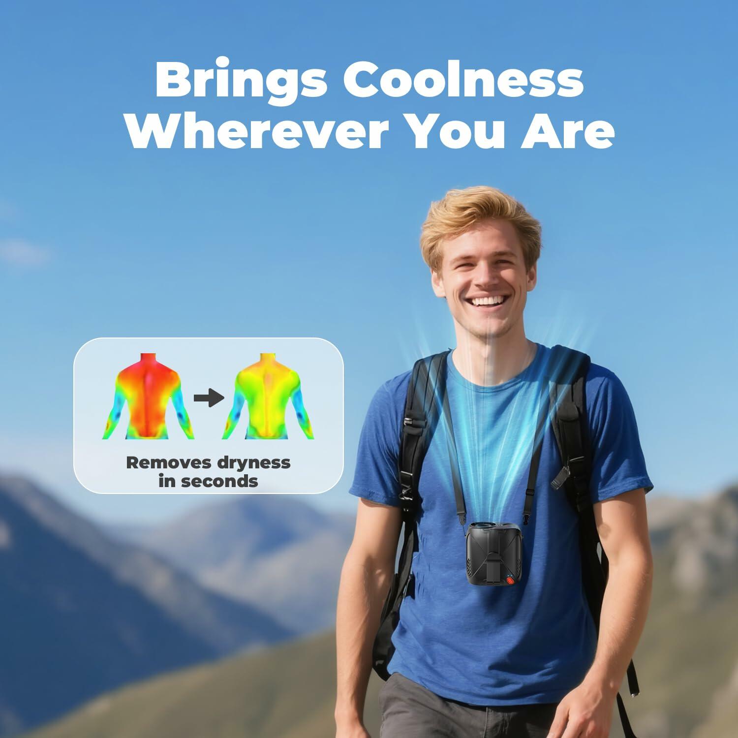 - 【40-Hour Of All-day Coolness】10,000mAh high-capacity battery keeps you cool all day long. Type-C fast-charging works with wall adapters, power banks, and laptops for reliable cooling anywhere. Safe design ensures comfort whether clipped or worn around the neck.