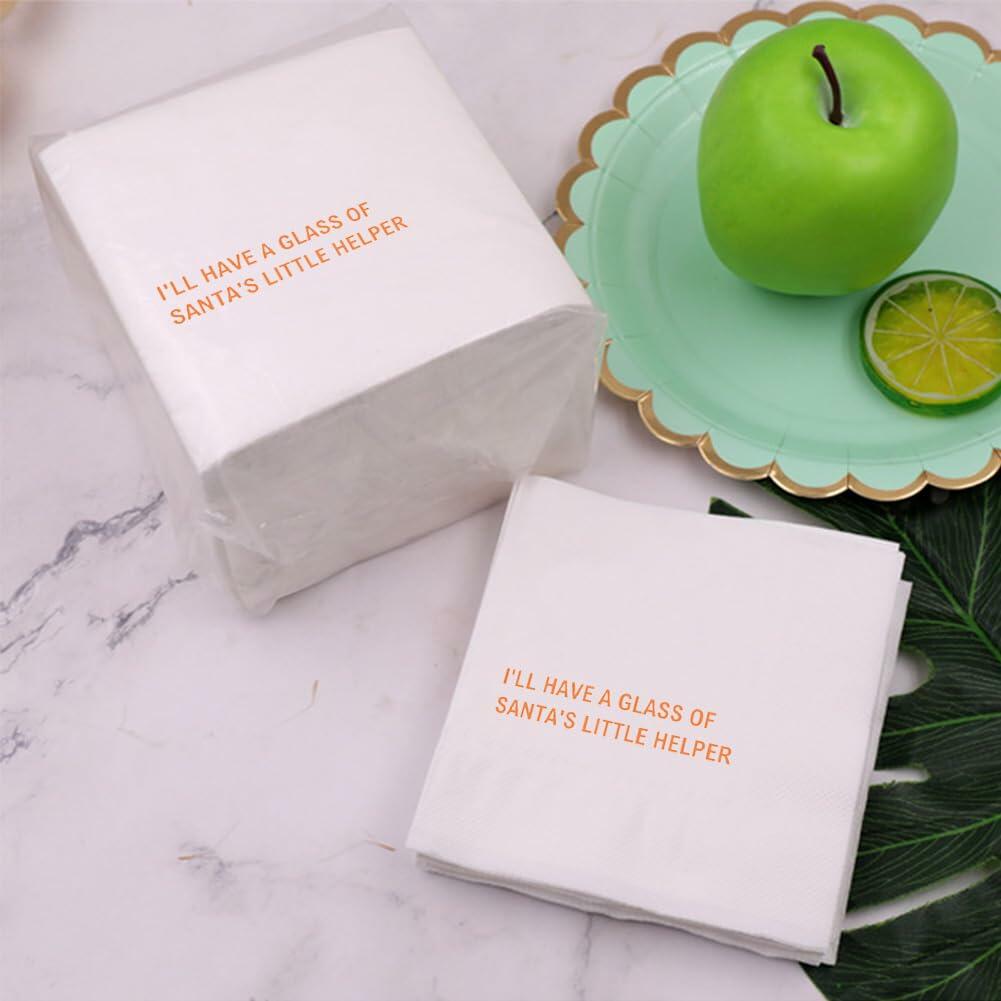 The VOWFOO "All The Baked Goods, Awkward Office Parties, Awkward-er Family Gatherings, Jolly Men In Red Pajamas, Decorating Dead Trees, Jesus' Birthday" cocktail napkins, in a pack of 100, are perfect for adding a humorous touch to your holiday celebrations. Here’s how you can use them: