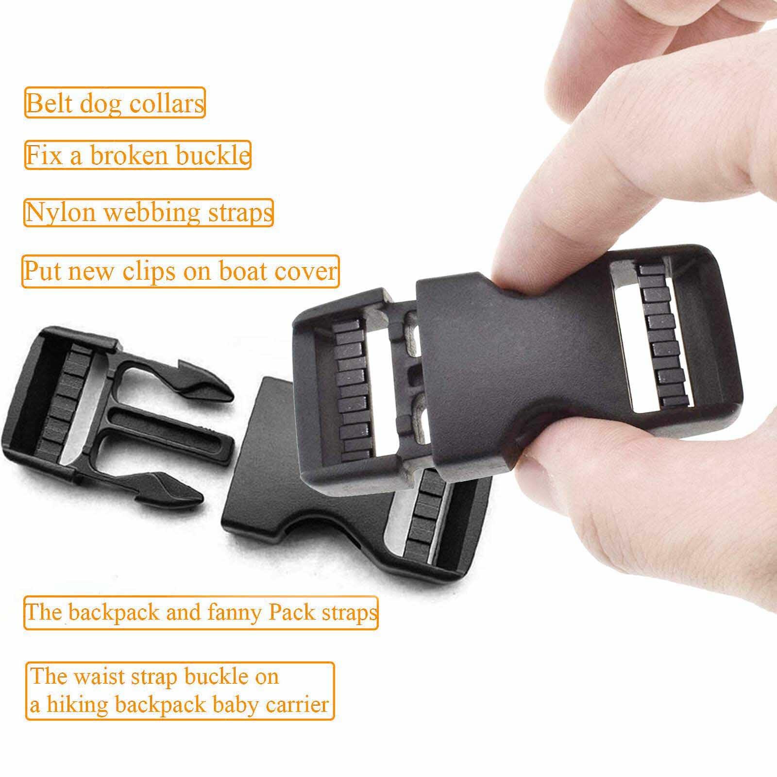 Multi-fonction: Perfect quick release buckles for nylon webbing straps,for putting new clips on boat cover.Great for replacing the piece on the backpack and fanny Pack straps,belt dog collars and boat cover.Good locking buckles for fixing a broken buckle.Also they can replace the waist strap buckle on a hiking backpack baby carrier.Stronger than the original!