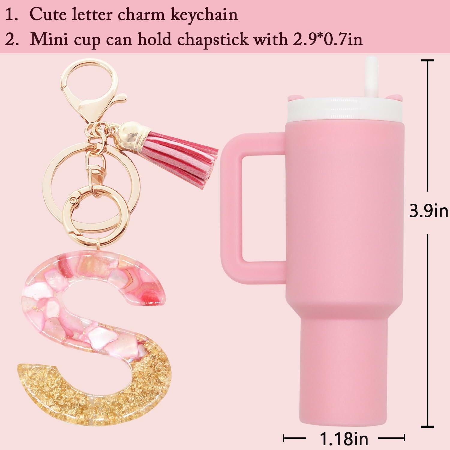Mini Tumbler Keychain Chapstick Holder Initial Letter Keychains For Women Girls Cute Stanley Cup Charms For Backpack