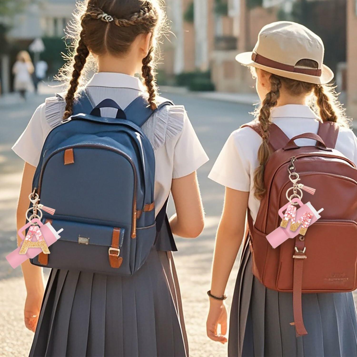 - You will get 1pc mini cup keychain, 1pc initial letter charm with tassel pendant key ring for backpack, school bag, handbags or your purse. The tumbler keychain stanley cup accessory is measuring at 3.5" long.