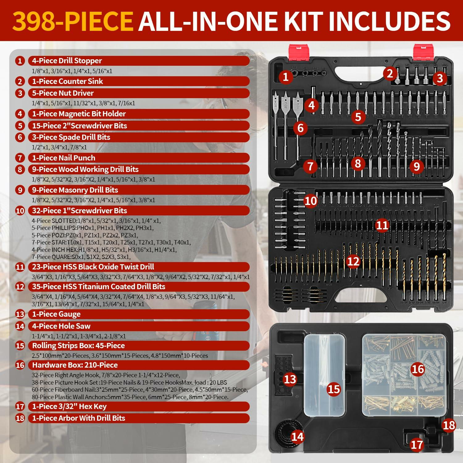 - ALL-IN-ONE: This Drill Bit Screwdriver Set includes a variety of drill bits for drilling wood, metal, brick, and screws, suitable for almost every job, not only meeting the needs of professional DIY enthusiasts, but also for home repair needs.