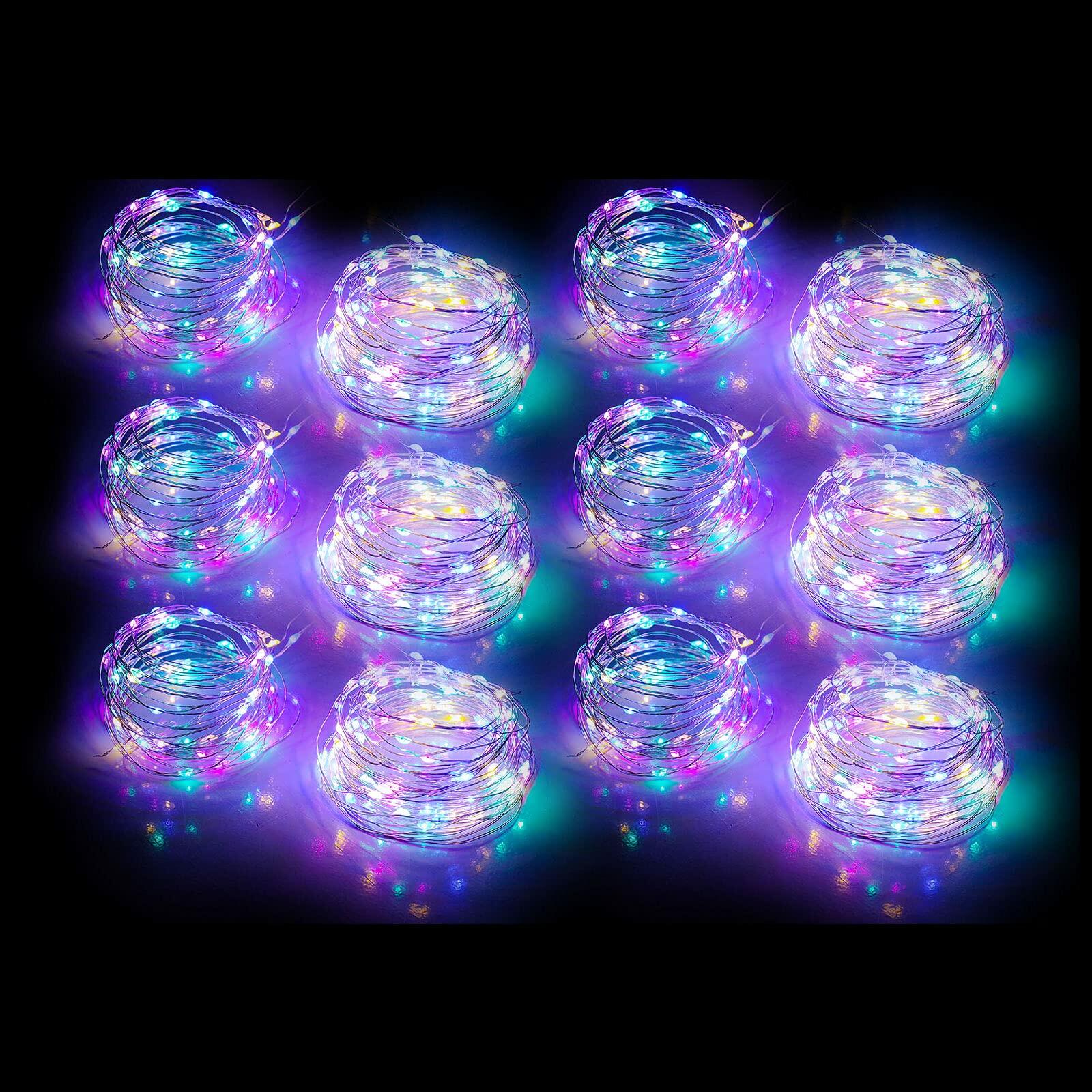 - 12 pack fairy lights: 12 pack 30 LEDs 10ft is made of flexible silver wire, 4 inch distance between led string lights. The product needs two AA batteries (batteries not included), in design, we have optimized the battery life and lasted longer Long.