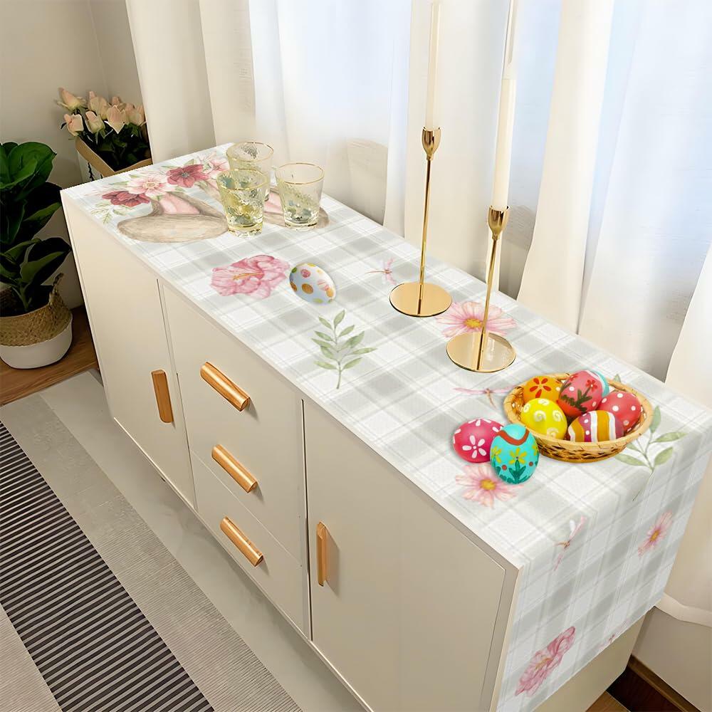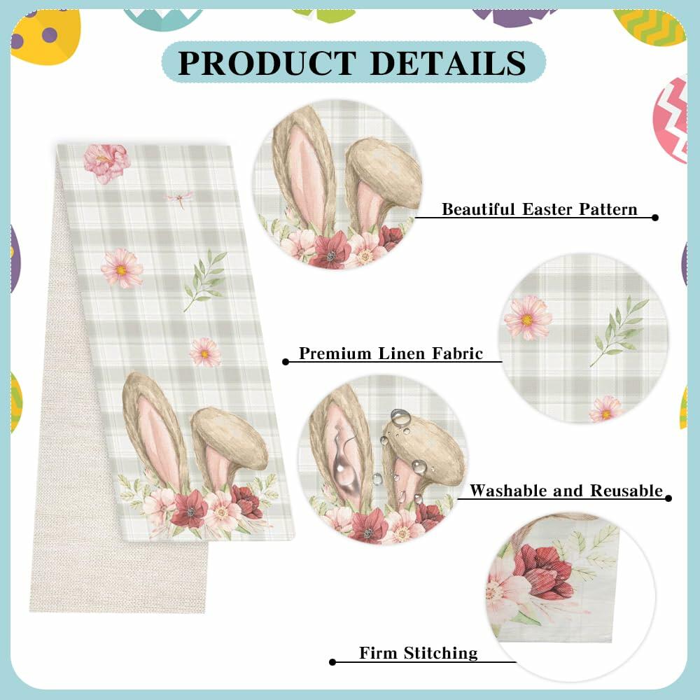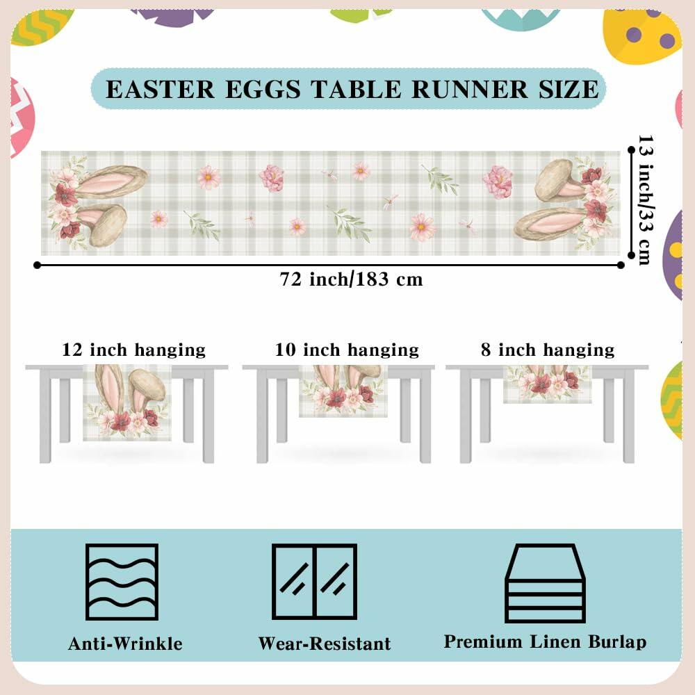 Easter Table Runner, Easter Runner for Table, Linen Table Runner Cover for Easter Spring Holiday Party Kitchen Dining Table Decorations Home Decorations, 13x72 Inch