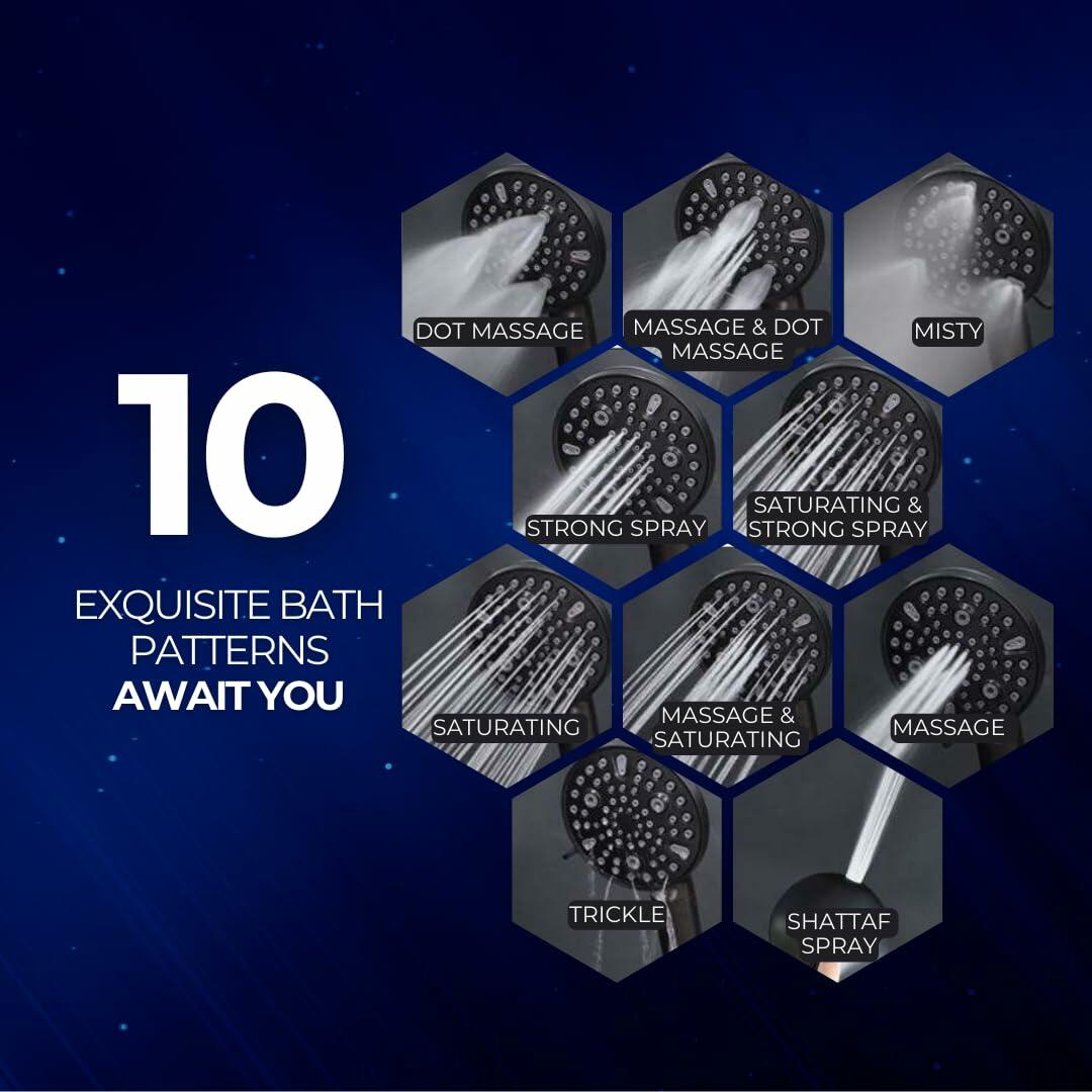 - 【10 Spray Settings】Our high-pressure handheld filtered shower head provides 9 adjustable settings plus a power wash mode. Simply flip the handle to activate the high-pressure power wash mode, ideal for cleaning tubs, tiles, pets, and more.