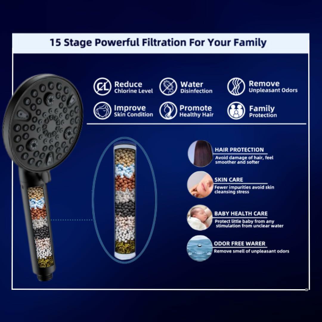 - 【Purify Your Water, Revel in Healthier Showers】: This latest handheld showerhead design by Wavizor comes with a potent filter layer with 15-stage powerful filtration, boasting superior KDF, maifanstone VC ball, and more. It effectively eliminates chlorine, heavy metals (lead, mercury, nickel, chromium), and other harmful substances, enhancing the health of your skin and hair. Enjoy the purest shower experience with your family, particularly beneficial for seniors, women, and children.