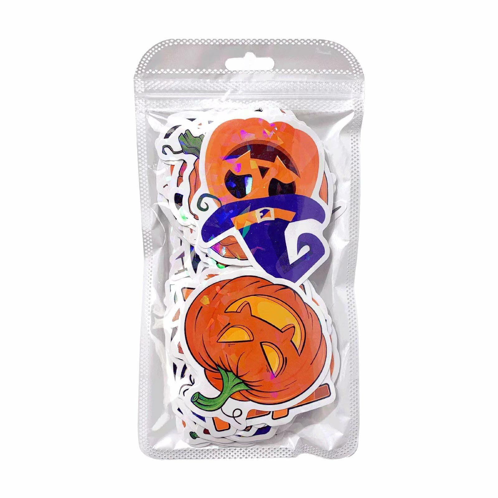 100PCS Halloween Pumpkin Ghost Witch Bat Sticker, Holographic Laser Shining Luggage Party Decoration, Halloween Party Waterproof halloween party favors