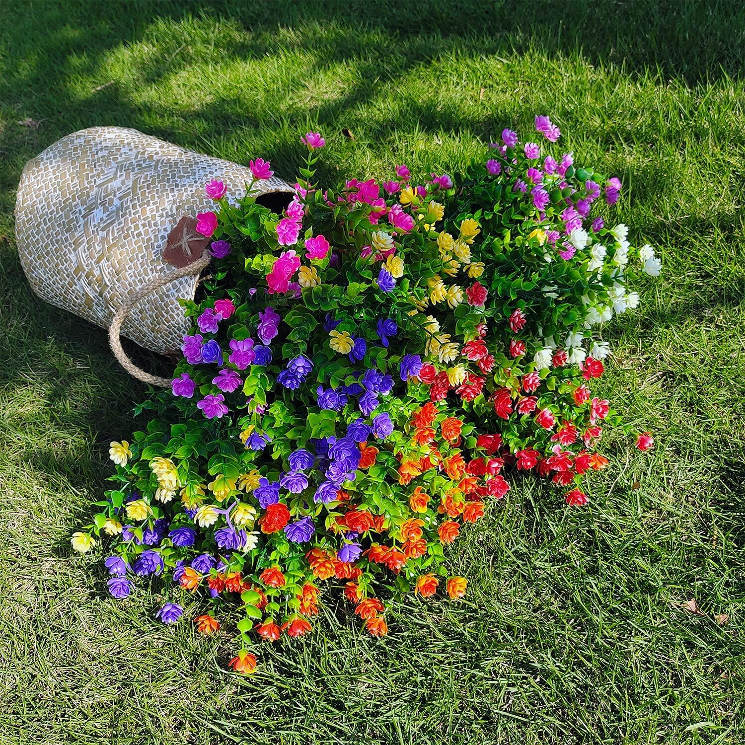 WEAUSUP 21 Bundles Outdoor UV Resistant Faux Plants Plastic 7 Colors